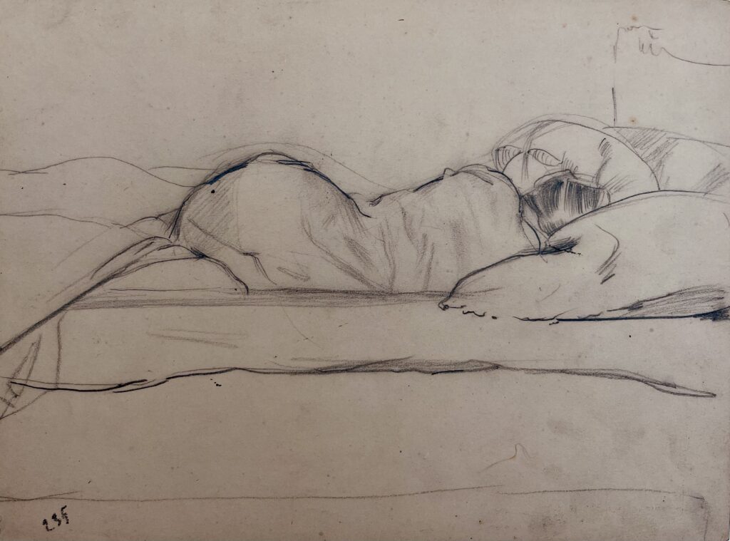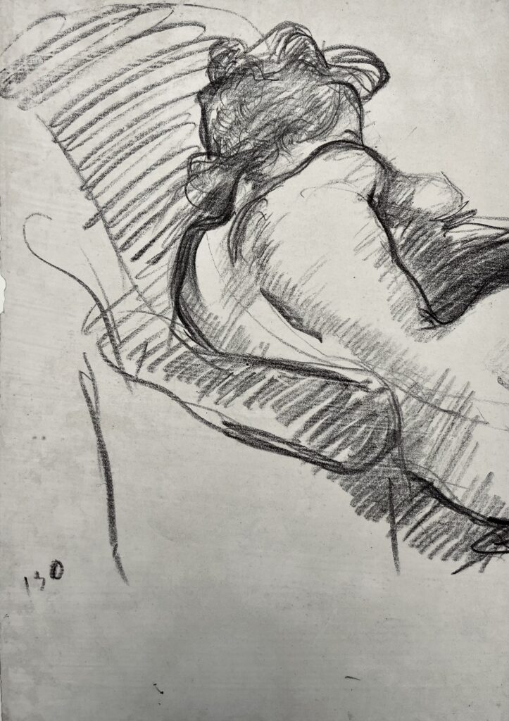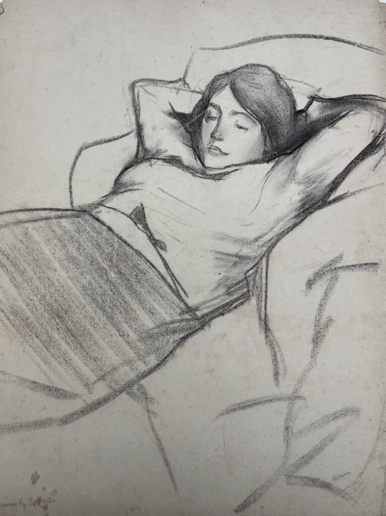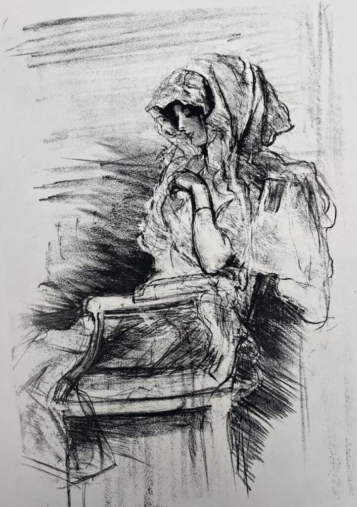 Although born in Wales, he was the son of the Marquis de Belleroche, of one of the most ancient French noble families who, being Huguenots, had fled to England in 1685. In 1871, following the death of his father, he moved back to Paris with his family. After he had finished school there, he studied at the studio of Carolus Duran, and spent long hours copying at the Paris museums. He soon became familiar with the leading painters and intellectuals of the day, and became a founder member of the Salon d’Automne, exhibiting alongside the Impressionists and associating with Emile Zola, Oscar Wilde, Albert Moore, Renoir, Degas, Helleu and Toulouse-Lautrec. Toulouse-Lautrec and Belleroche were exact contemporaries, who first met at the age of eighteen. Belleroche painted Toulouse-Lautrec’s portrait and shared with him a passion for the model Lili, who epitomised the Belle Epoch aesthetic of Toulouse-Lautrec’s most celebrated posters. Lili became Belleroche’s favourite model and mistress. In 1882 Belleroche also met the already acclaimed American painter John Singer Sargent, who recognised Belleroche’s talent and empathised with his free drawing style and sensitivity to light. They became life-long friends. Sargent’s handling of pastel was a great inspiration to Belleroche, while Belleroche’s sensitivity to tone and creation of form through the modeling of light exerted a strong influence on Sargent. In 1900, Belleroche became fascinated by the medium of lithography and by 1905 he was a leading figure in the field of lithographic portraiture. A.M. Hind, a former keeper of prints at the British Museum, described his works in lithography as “amongst the greatest achievements of the craft since its discovery.”
