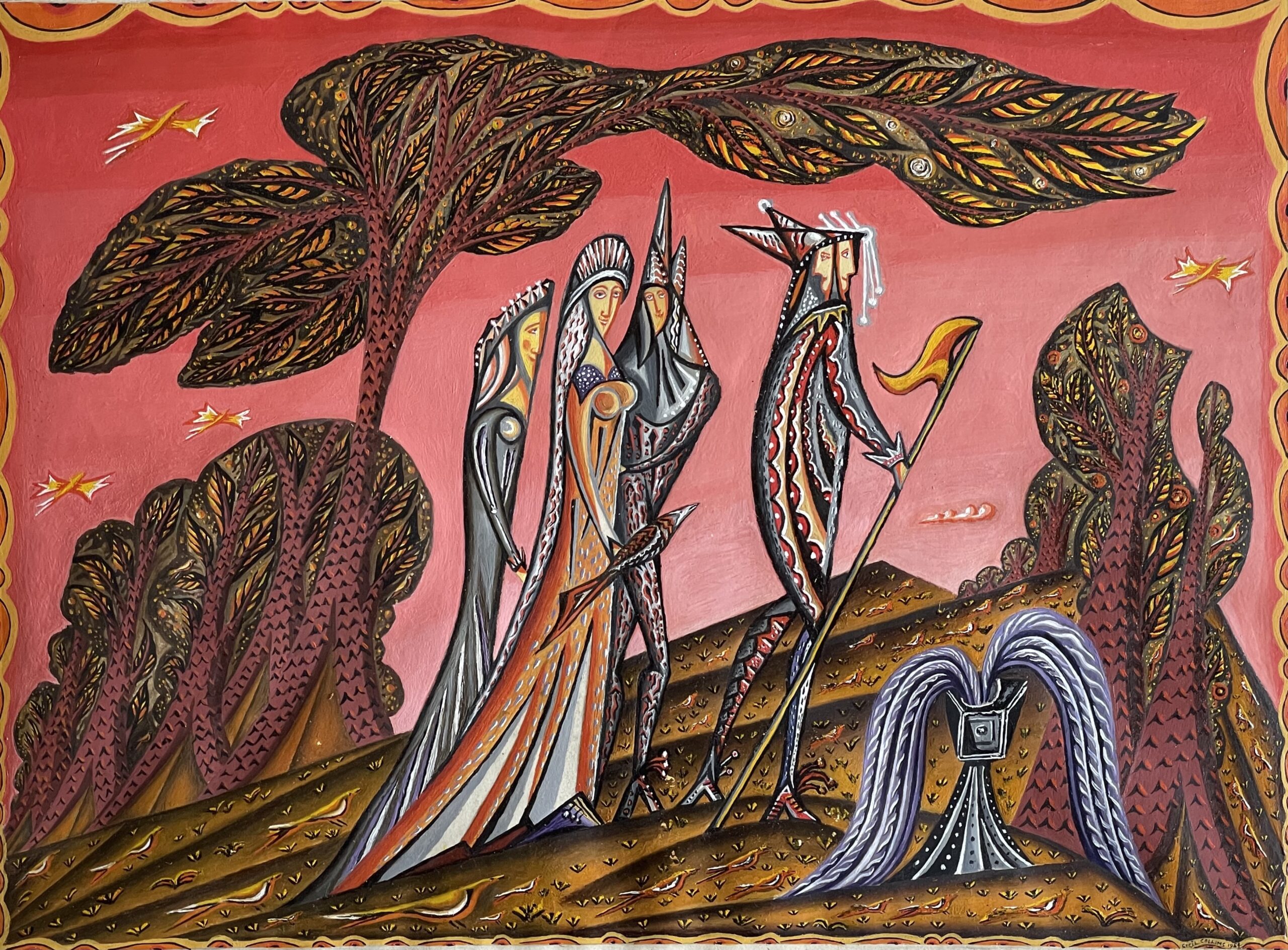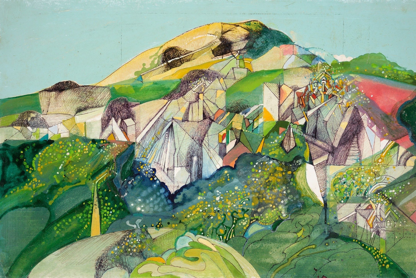 From Peter Brook’s stark industrial landscapes to Charles Mahoney’s lyrical garden scenes, the exhibition journeys through Britain and beyond. It highlights the surreal symbolism