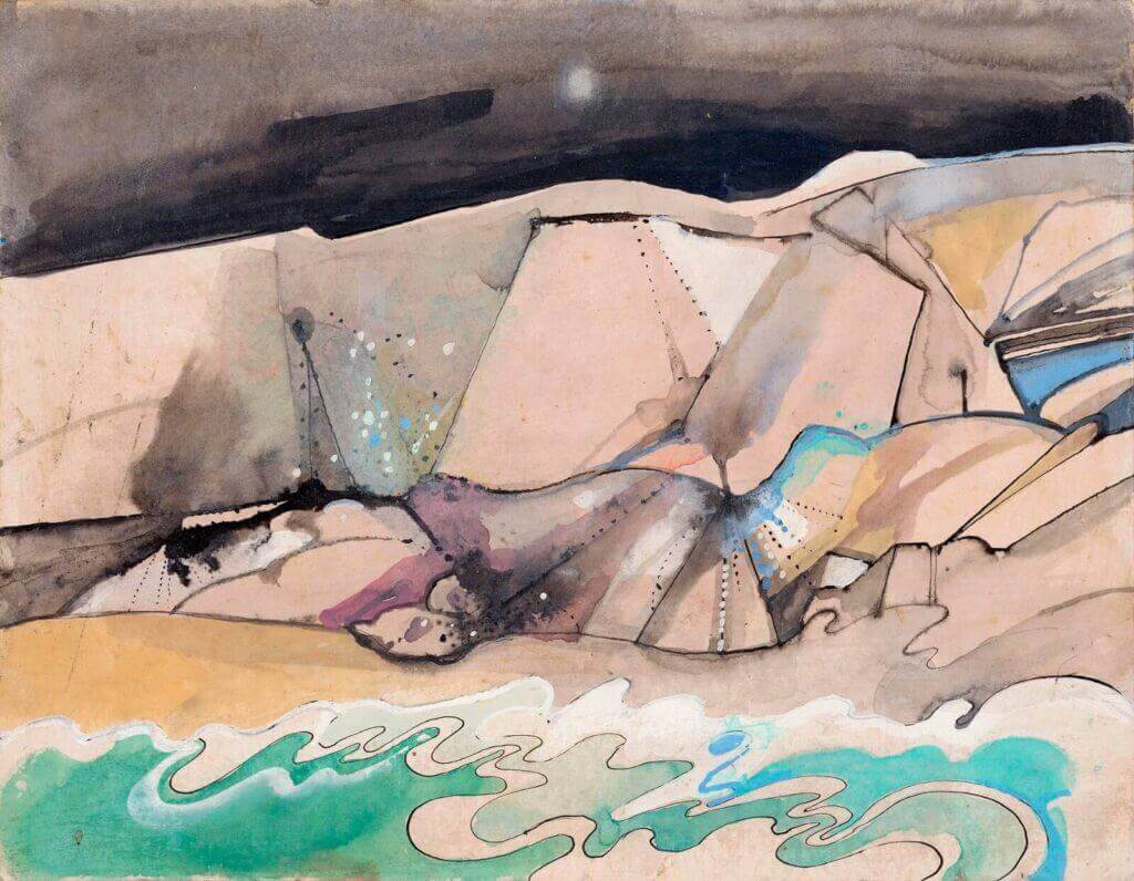 SKU: 8269 (25.5cm x 34cm) David Evans (1929 - 1988) Adam and Eve in the garden of Eden, circa 1970 £950.00