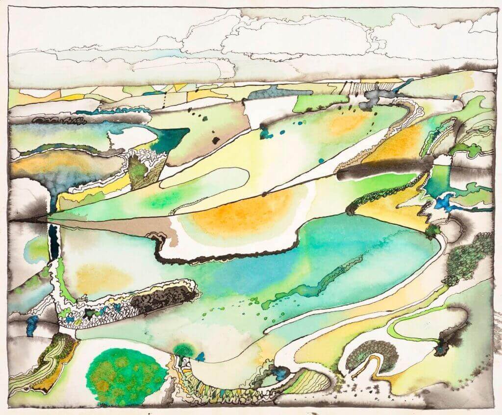 Abstract in blue, brown and light green