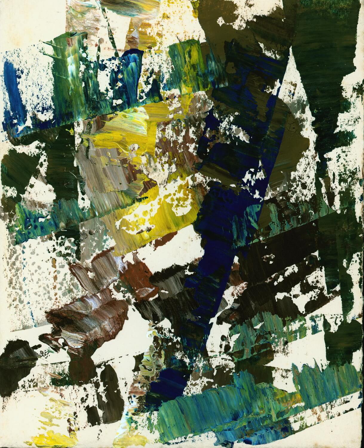 Abstract in dark blue, red, brown green and yellow, 1950’s