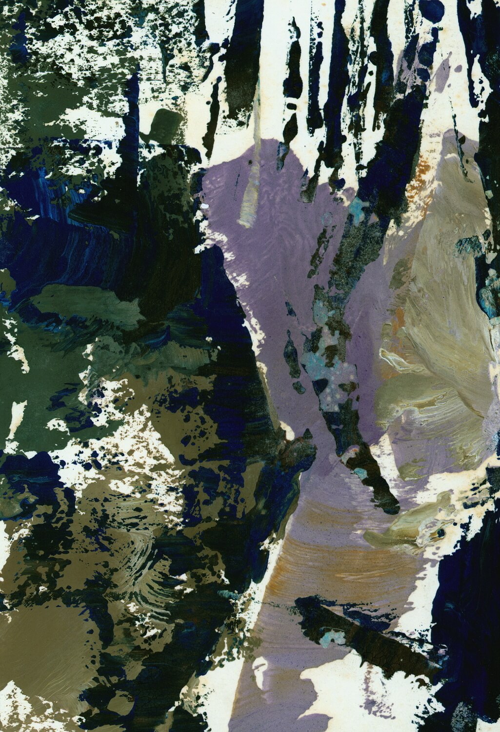 Abstract in mauve, dark and light brown and blue.