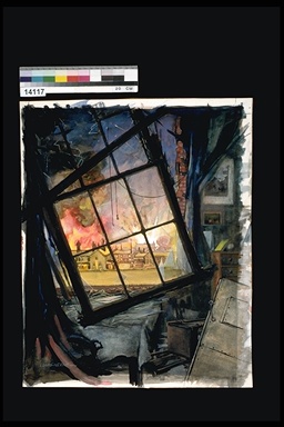 As Commanding Officer of the Lorne Scots during WW2 Keene witnessed the bombing of Liverpool and London. According to an article in the Evening Standard (May 29, 1942), his paintings, including a vivid incendiary bomb picture were included in the National Gallery show of May 1942. His obituary (Oakville, 8 May 1972) reported, While in England Col. Keene did some paintings of the air raids and these were later purchased by the British government. Some of his wartime paintings were also sold to the Canadian government.