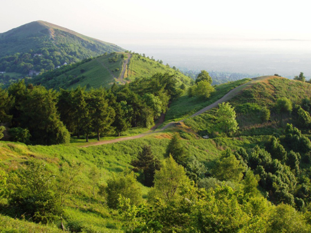 The Malvern Hills are a range of hills in the counties of Worcestershire, Herefordshire and northern Gloucestershire.  The highest summit of the hills affords a panorama of the Severn valley with the hills of Herefordshire and the Welsh mountains, parts of thirteen counties, the Bristol Channel, and the cathedrals of Worcester, Gloucester and Hereford.