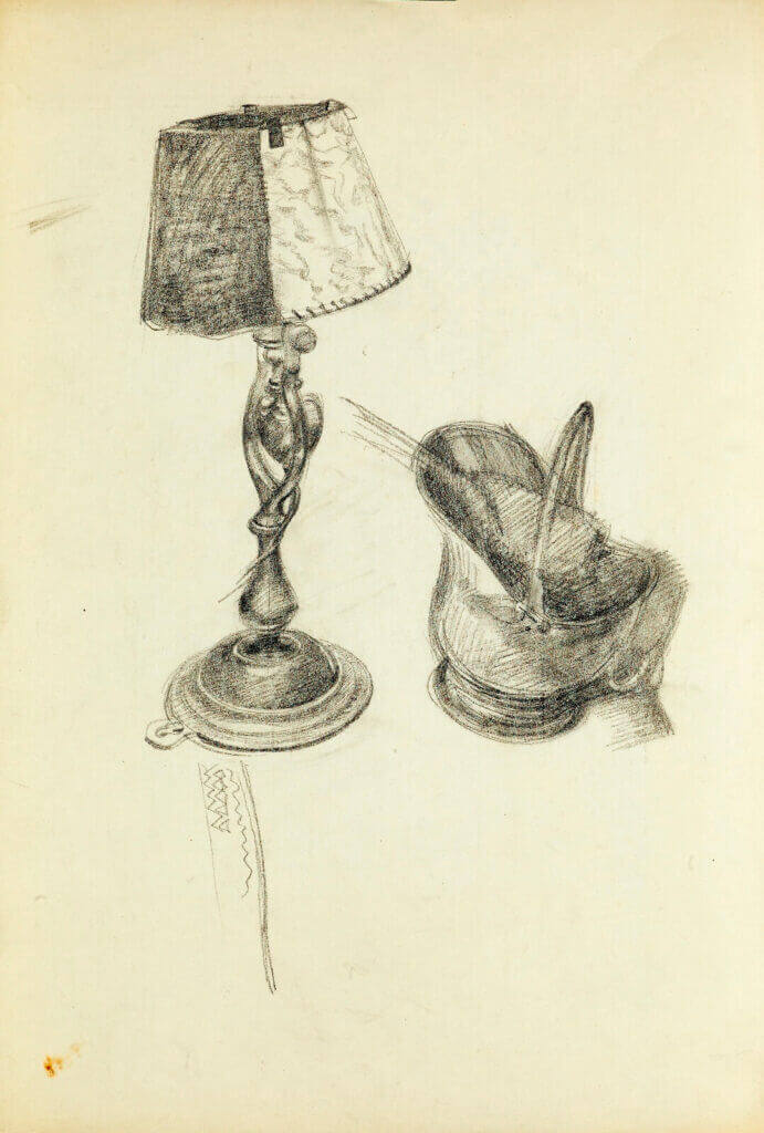 Still life with artist’s pamphlet Christmas Coleus, 1940’s