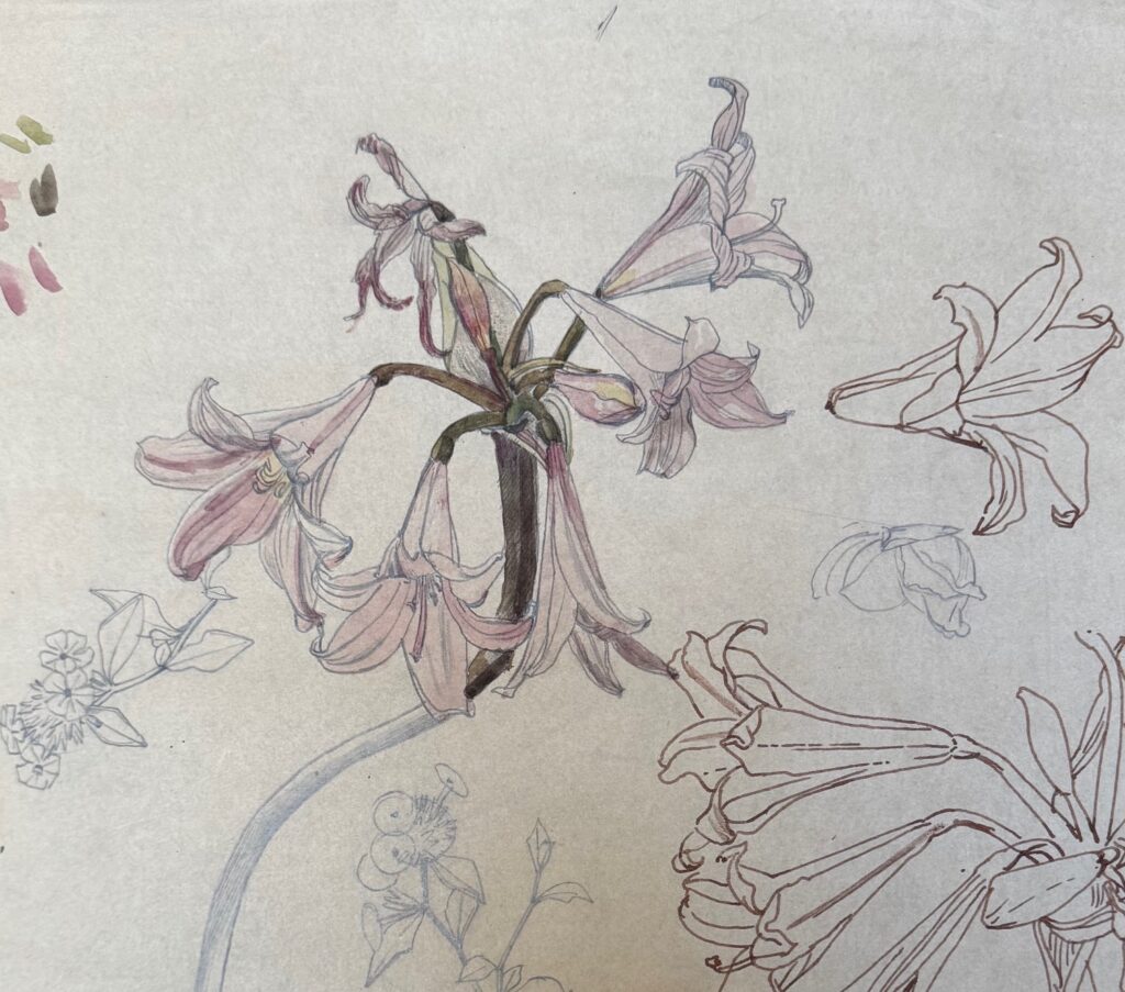 Botanical study of Amaryllis (also known as Belladonna Lily).