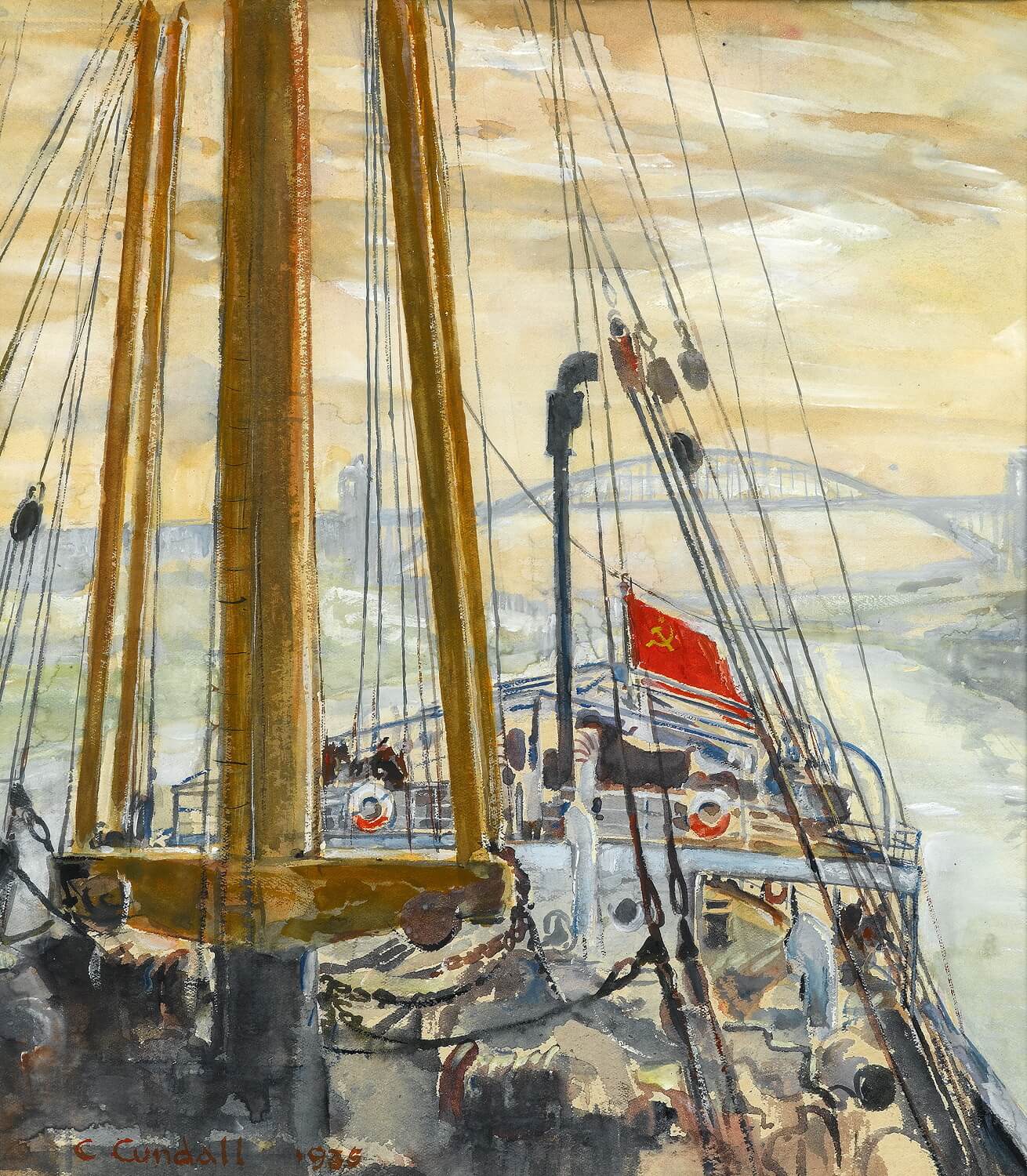 Painter, potter and stained glass artist, born in Stratford, Lancashire. After working as a designer for Pilkington’s Pottery Company under Gordon Forsyth, Cundall studied at Manchester School of Art, obtaining a scholarship to the Royal College of Art, 1912. After World War I army service he returned to the Royal College in 1918, then from 1919 to 1920 attended the Slade, and furthered his studies in Paris. Cundall traveled widely in several continents and became noted for his panoramic pictures, such as Bank Holiday Brighton, in the Tate Gallery (accession no. NO4700). He was a member of NEAC, RP, RWS and other bodies and was a prolific RA exhibitor. He had first solo show at Colnaghi 1927. He was an Official War Artist in World War II, during which time he was sent to Quebec (1944). In the same year he was elected RA. His wife was the artist Jacqueline Pietersen.