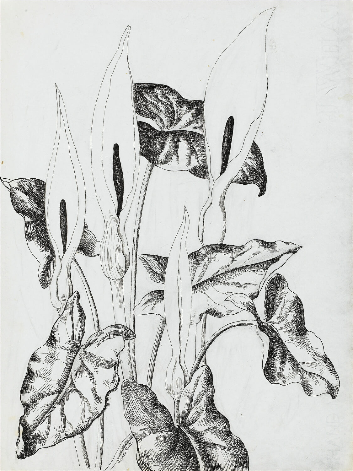 Pen and ink, 15 1/2 x 11 in. (39.4 x 28 cm.)