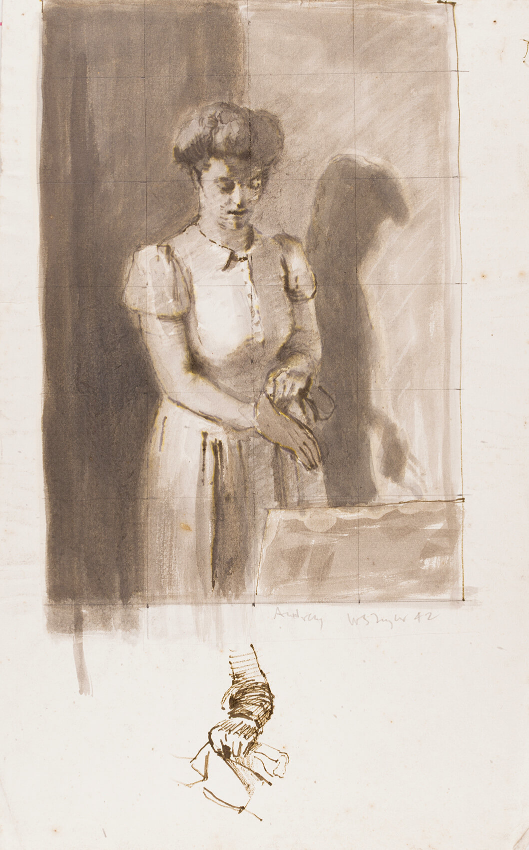 The model is the artist’s wife Audrey Wallis, (1919-1997).