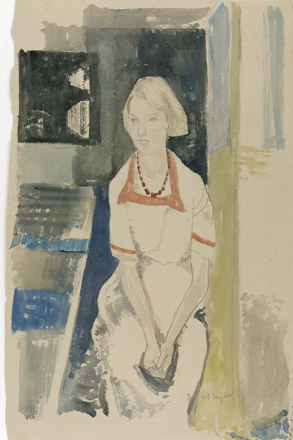 Taylor’s pictures combine figure and landscape with strong Neo-Romantic overtones, and are saturated with lyricism and a sense of longing.  His compositions are frequently set in the artist’s Devonshire garden and usually  include portraits of his wife, Audrey Wallis (1919-1997).