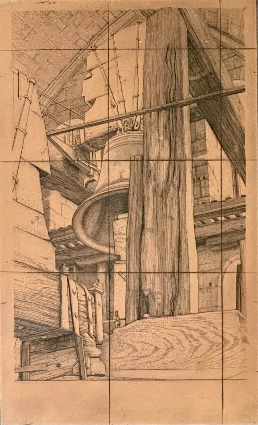 Austin made three engravings of Bells at Assisi. This largest and most ambitious of the three is believed to have never been editioned.