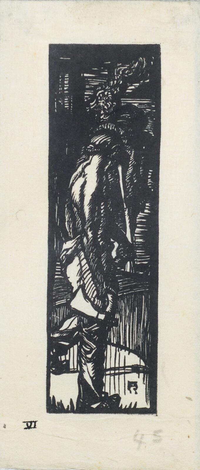 Brangwyn was an independent artist, an experimenter and innovator, capable of working on both large and small scale projects, ranging from murals, oil paintings, watercolours, etchings, woodcuts and lithographs to designs for architecture, interiors, stained glass, furniture, carpets, ceramics and jewellery, as well as book illustrations, bookplates and commercial posters. It is estimated that he produced over 12,000 works during his lifetime. Mural commissions included the Worshipful Company of Skinners, London (1902-09), St Aidan’s church, Leeds (1908-16), Manitoba Legislative Building, Winnipeg, Canada (1918-21), Christ’s Hospital, Horsham (1912-23), State Capitol, Jefferson City, USA (1915-25), the British Empire panels, Swansea (1925-32), and Rockefeller Center, New York (1930-34). Brangwyn married Lucy Ray in 1896 and took on the lease of Temple Lodge, Hammersmith, in 1900. In 1918 the artist purchased The Jointure, Ditchling, where he spent most of his time following his wife’s death in 1924. Elected RA in 1919, knighted in 1924, holder of countless artistic awards, Brangwyn was modest about his singular achievements, regarding art as an occupation and describing himself as a designer.