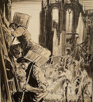 This drawings is a study for The Remaking of Belgium, issued as an auto lithograph in 1915, probably on the occasion of the Belgian Rebuilding Exhibition.