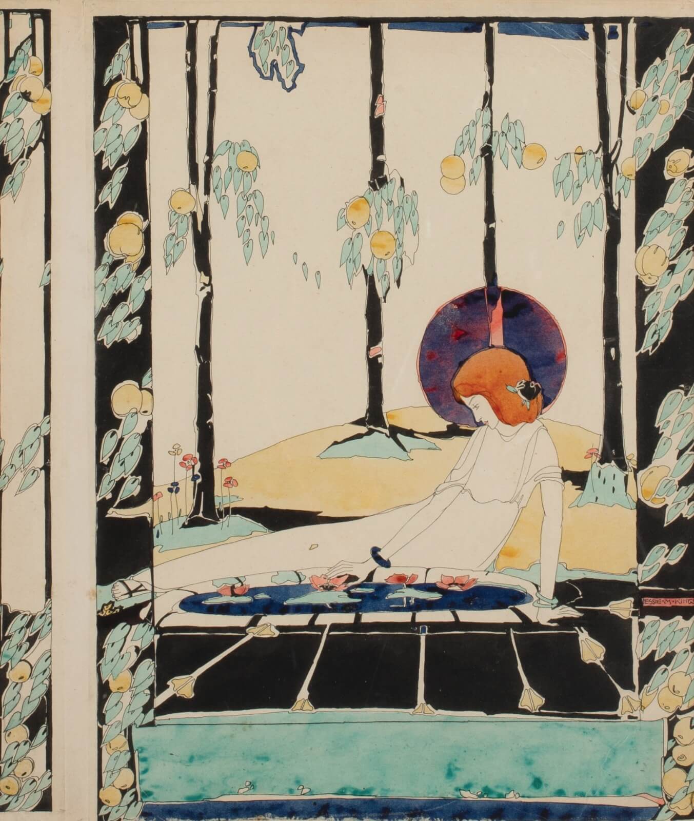 Painter and illustrator, born at New Kilpatrick, Bearsden, Scotland. She showed a precocious ability for drawing and illustration as a child. Her parents allowed her to attend Glasgow School of Art in the 1890’s. She later taught there collaborating with her colleague Peter Davidson on many decorative designs. She worked for a variety of publishing companies including Routledge and illustrated such works as Morte d’Arthur by Tennyson and Oscar Wilde’ A House of Pomegranates. A great traveller, she shared her time between Scotland and Paris using her multi-faceted abilities to not only illustrate books but to work in batik and as a ceramic painter. Her work as an artist was recognised as early as 1898 by theStudio Magazine.