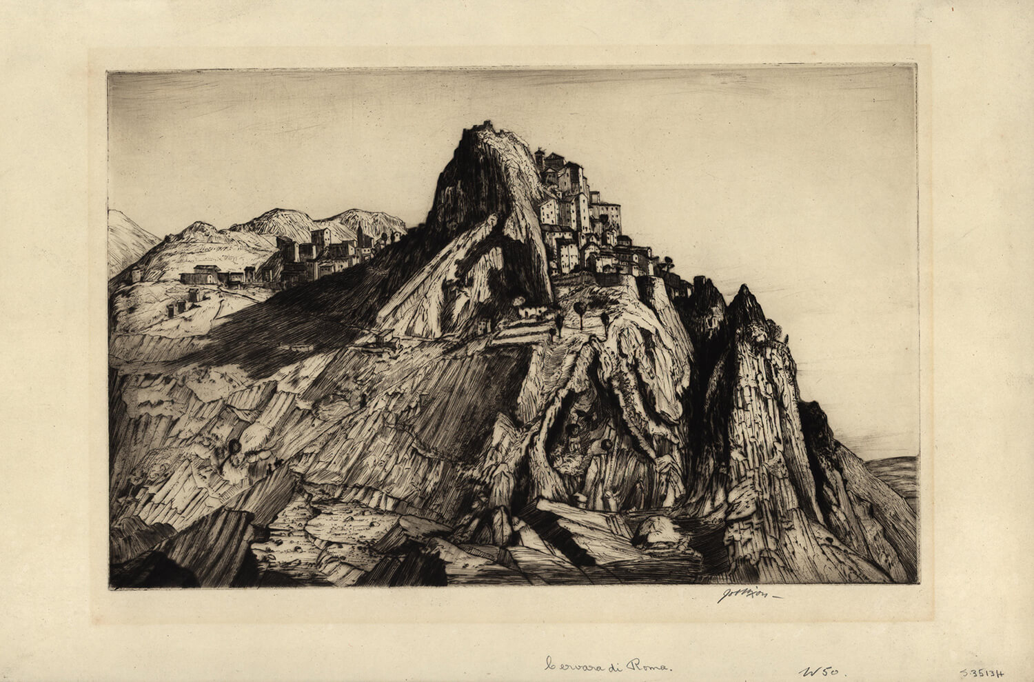 Born in Stoke-on-Trent, Nixon studied at the Slade and at South Kensington and, in 1915, was successful at the RA whilst still a student. He painted in oil and watercolour, principally landscape and topographical scenes, but he is best known for his etchings, drypoints and line engravings, which he started producing from 1913. He was elected ARE in 1923 and, that year, he won the first competition for the newly endowed scholarship of engraving at the British School in Rome. It was while in Italy that he produced An Italian Festa, the huge plate that first brought him to the public’s attention. However, the satirical, almost grotesque, nature of this etching was not his only style and English genre subjects form the majority of his work. Nevertheless, his appointment as assistant to Malcolm Osborne in the Engraving School at the Royal College of Art, South Kensington “came as a shock to the old-fashioned collector and connoisseur but the soundness of his technique and his mastery of etching processes, as well as the salutary influence he exercised in diverting his pupils from too slavish a pursuit of the landscape tradition, more than justifed his appointment.”