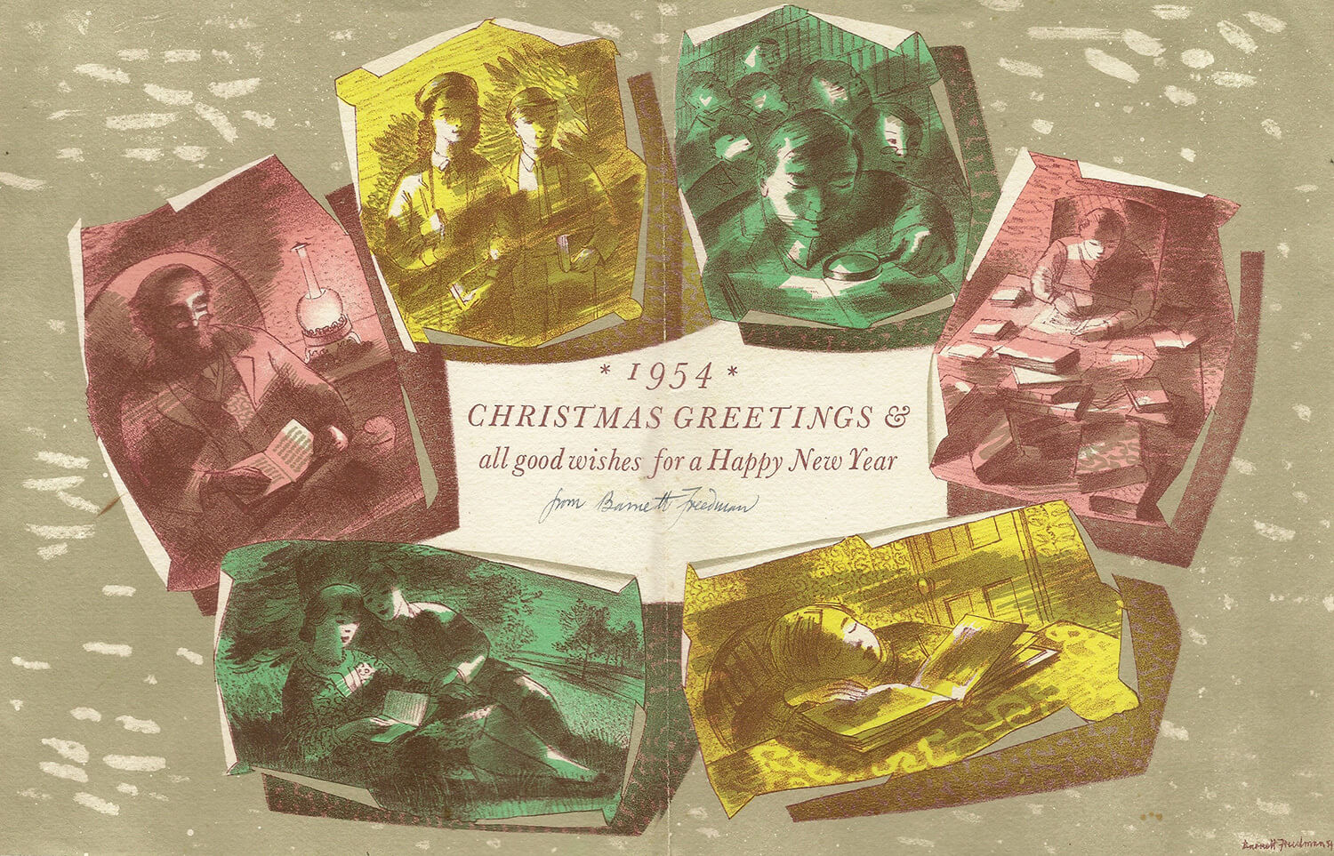 Illustrator, painter, printmaker and teacher, Freedman was born to Russian Jewish immigrants living in poverty in the East End of London. In 1916, he worked as draughtsman to a monumental mason, and at the same time took evening classes at St Martin’s School of Art. In 1922, he won a three-year scholarship to the Royal College of Art. In 1928, he joined the staff of the Royal College, and not long afterwards began to teach at the Ruskin School of Art, Oxford. He soon became a pioneer in the revival of colour lithography. He was an Official War Artist in World War II. By the time of his death Freedman had established an enviable reputation as an illustrator and designer of posters, stamps, books and book-jackets. He believed that there was no such thing as commercial art, ‘only good art and bad art’. His first exhibition was held in 1929 at the Literary Bookshop, Bloomsbury. A memorial exhibition was organised by the Arts Council in 1958. Manchester Polytechnic, which holds the Freedman archive, held a major show in 1990. Examples of his work are in the collection of the Tate Gallery.