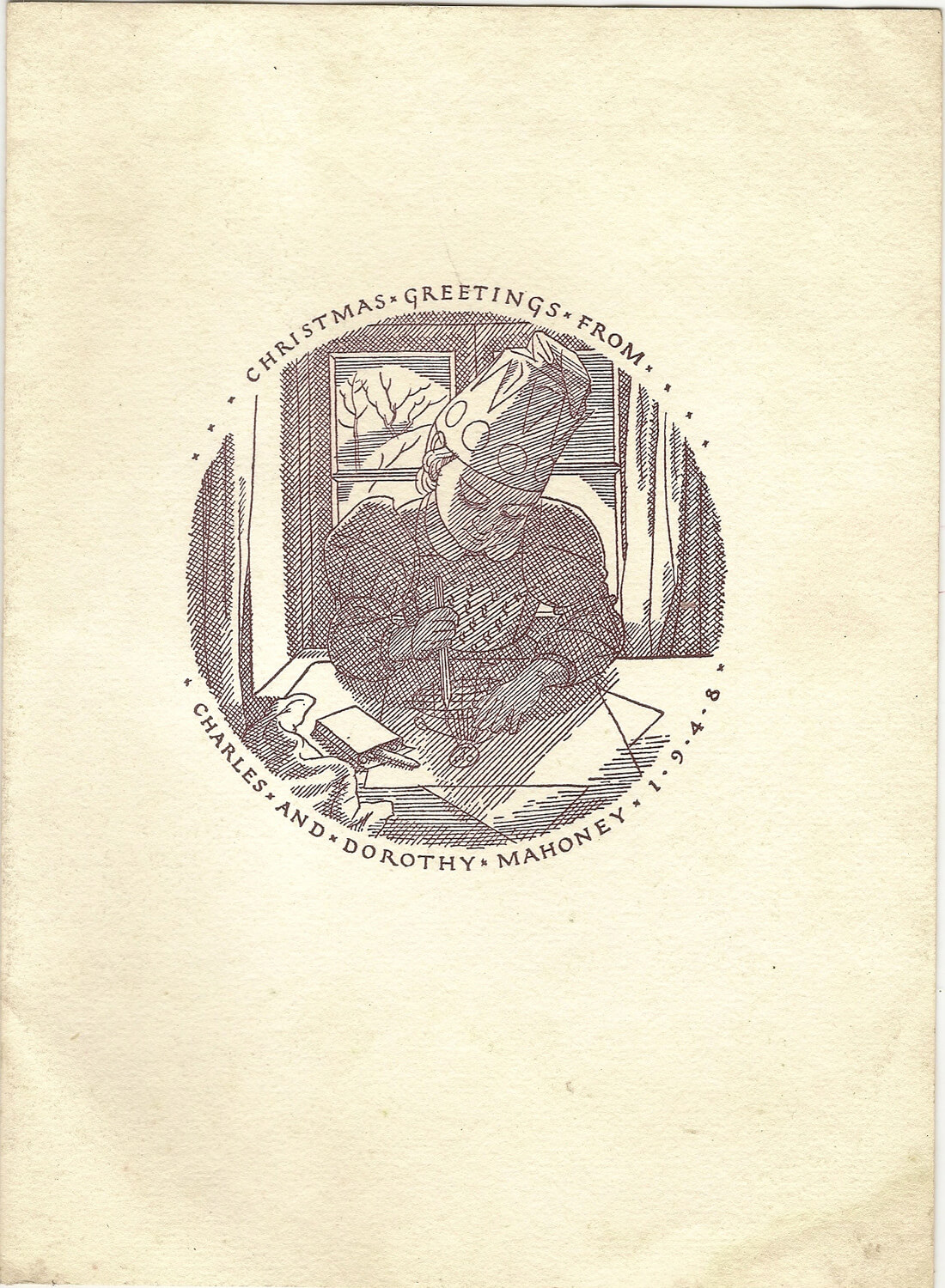 In his memoir Since 50, Men & Memories 1922-1938 (New York,1940, p. 236) the first two names that appear on William Rothenstein list of top Royal College of Art students were Henry Moore and Charles Mahoney – the list continues with the names of luminaries such as Eric Ravilious, Edward Bawden, Barnett Freedman Edward Le Bas, and Evelyn Dunbar. The process of reassuring Mahoney’s place in 20th century British Art has had several important milestones including the 1975 Ashmolean exhibition, the Liss Fine Art/Fine Art Society touring show (2000) and Mahoney’s predominant feature in Tate Britain’s The Art of the Garden, (2005) – but the process of reassessment still has a long way to go.