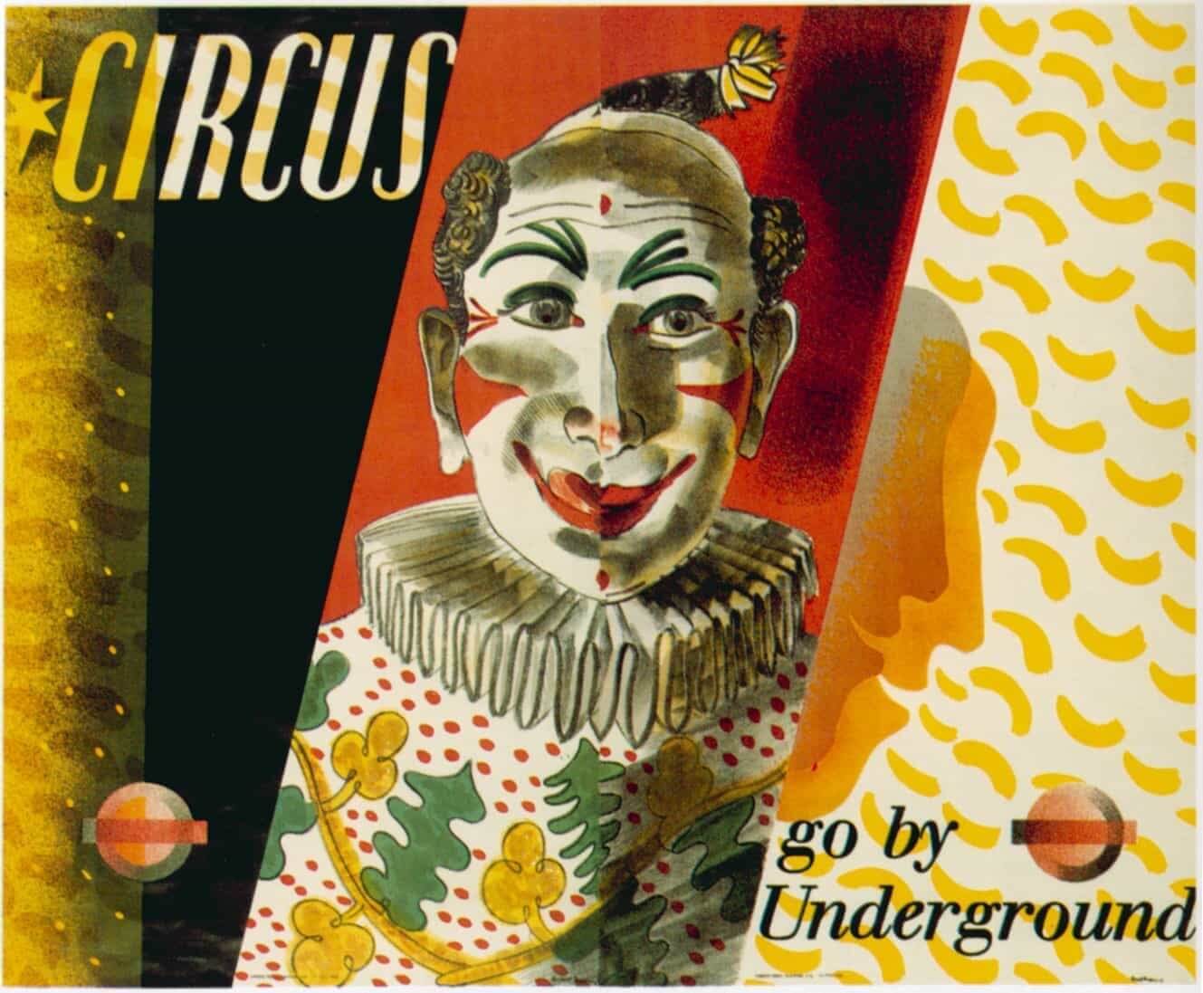 Circuses were a popular form of family entertainment in London, particularly in the 1930s. They were advertised on small panel posters inside Underground trains and occasionally on full size posters such as this. Composed of one design across two different sheets of paper, this is know as a ‘pair poster’, which were displayed in prime sites such as Underground station entrances.