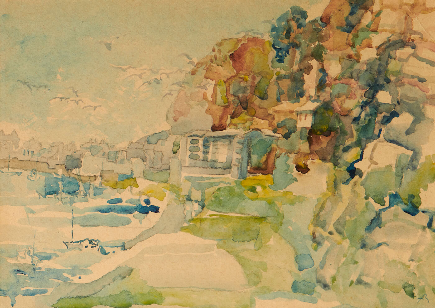 According to the Brangwyn expert Dr Horner historians have, in the past, mistakenly categorized Brangwyn’s out¬≠put based entirely on an assumed change of colour palette following either the artist’s trip to Turkey in 1888 or his 1892 sketching holiday with Arthur Melville in Spain. However, on closer inspection, it is appar¬≠ent that he discovered colour prior to 1888 and was still producing som¬≠bre toned works in the 1900s.