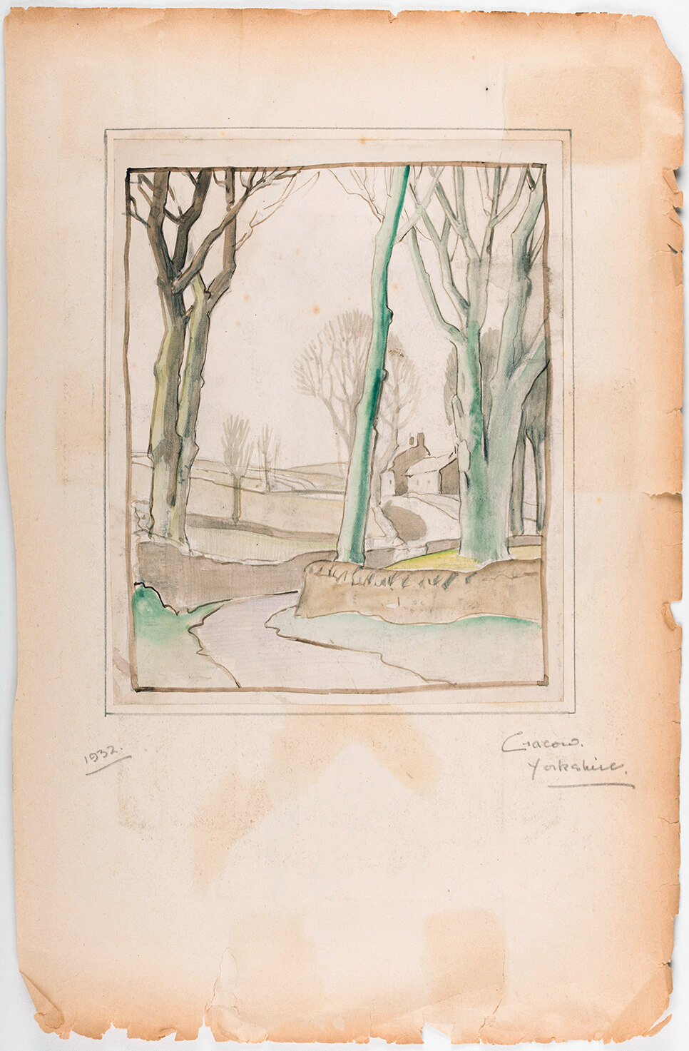 Painter, notably in tempera, especially of Derbyshire. Born in Sheffield, Allen attended King Edward VII School for boys, and then became a clerk in the steel works of Arthur Balfour, in his spare time attending Sheffield Technical School of Art. He served in the army in World War I, gaining the Military Medal for conspicuous gallantry. Although badly injured and having an artificial leg, Allen continued to paint and became Balfour’s confidential secretary. From 1931 he painted full-time and joined the new Yorkshire Group of Artists. He began exhibiting at the RA, and showed with RBSA and PS. He also travelled in Ireland and was elected a member of the RBA in 1935. Although Allen’s early work is conventionally realistic he soon developed his distinctive style of simplified landscape and figure studies, which eventually were shown abroad in Canada and America. In the early 1940s Allen published a series of articles in The Artist on landscape painting in which he expounded his approach. His work is in a number of public galleries, notably Sheffield, Wakefield, Newcastle upon Tyne, and Newport, as well as in Australia and New Zealand. There was a memorial show at Graves Art Gallery, Sheffield, in 1959 and in 1986. Lived in Ecclesall, Sheffield.