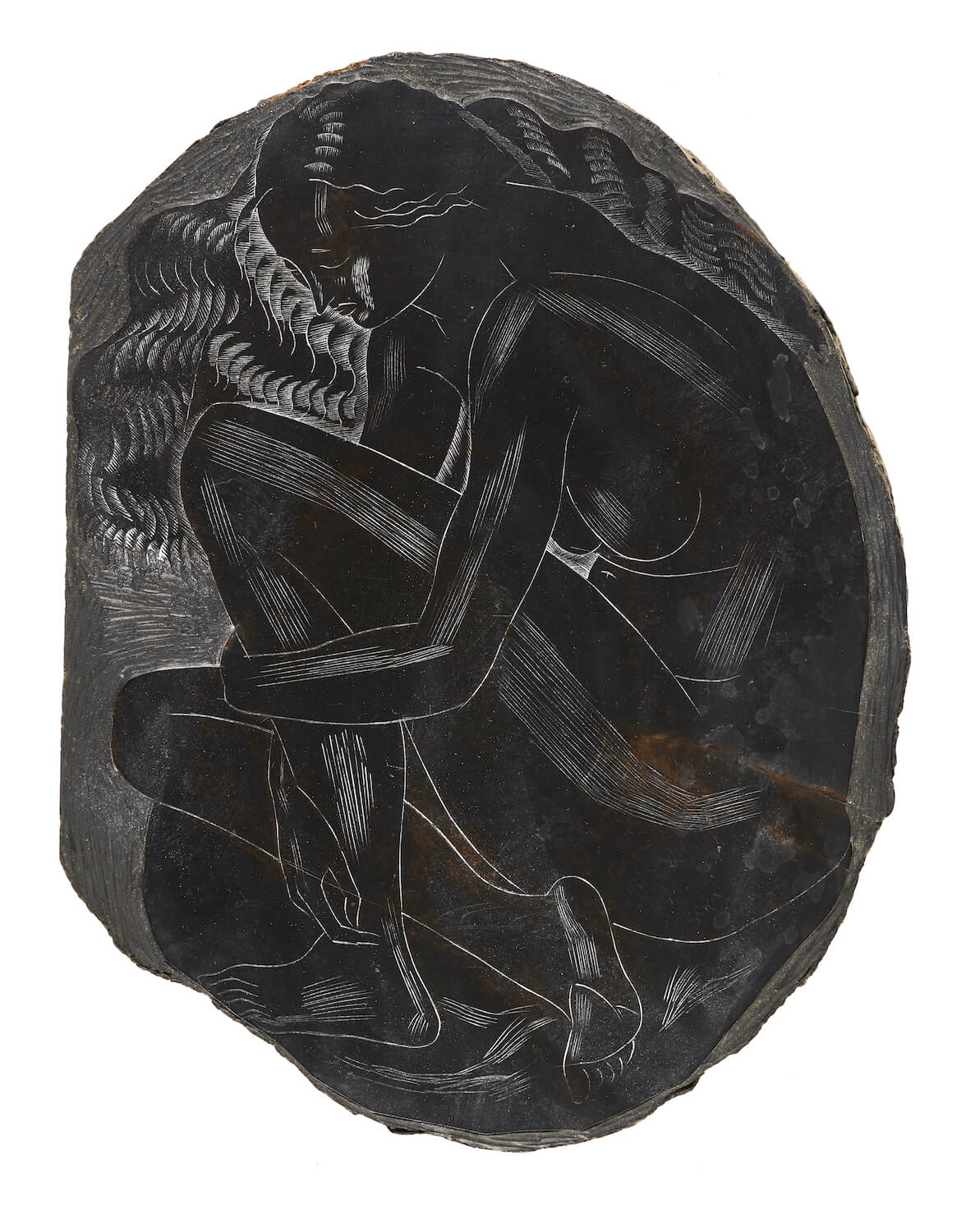 This original woodblock was given by Underwood to Margaret Bruce (1909-98), his studio assistant. Bruce trained at the Glasgow School of Art, 1928-32, and in the following year enrolled at the Brook Green School of Art; two years after this she became studio stooge’, ie studio assistant, to Leon Underwood, and worked there until WW2, maintaining a friendship with him for the rest of his life.