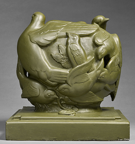Exhibited Royal Academy, 1948, (1386), as Bird Group- Dawn Chorus, 1946-7, part of a Memorial to Esmond Carrick Simpson; City of Bradford Art Gallery, 1955 (744);