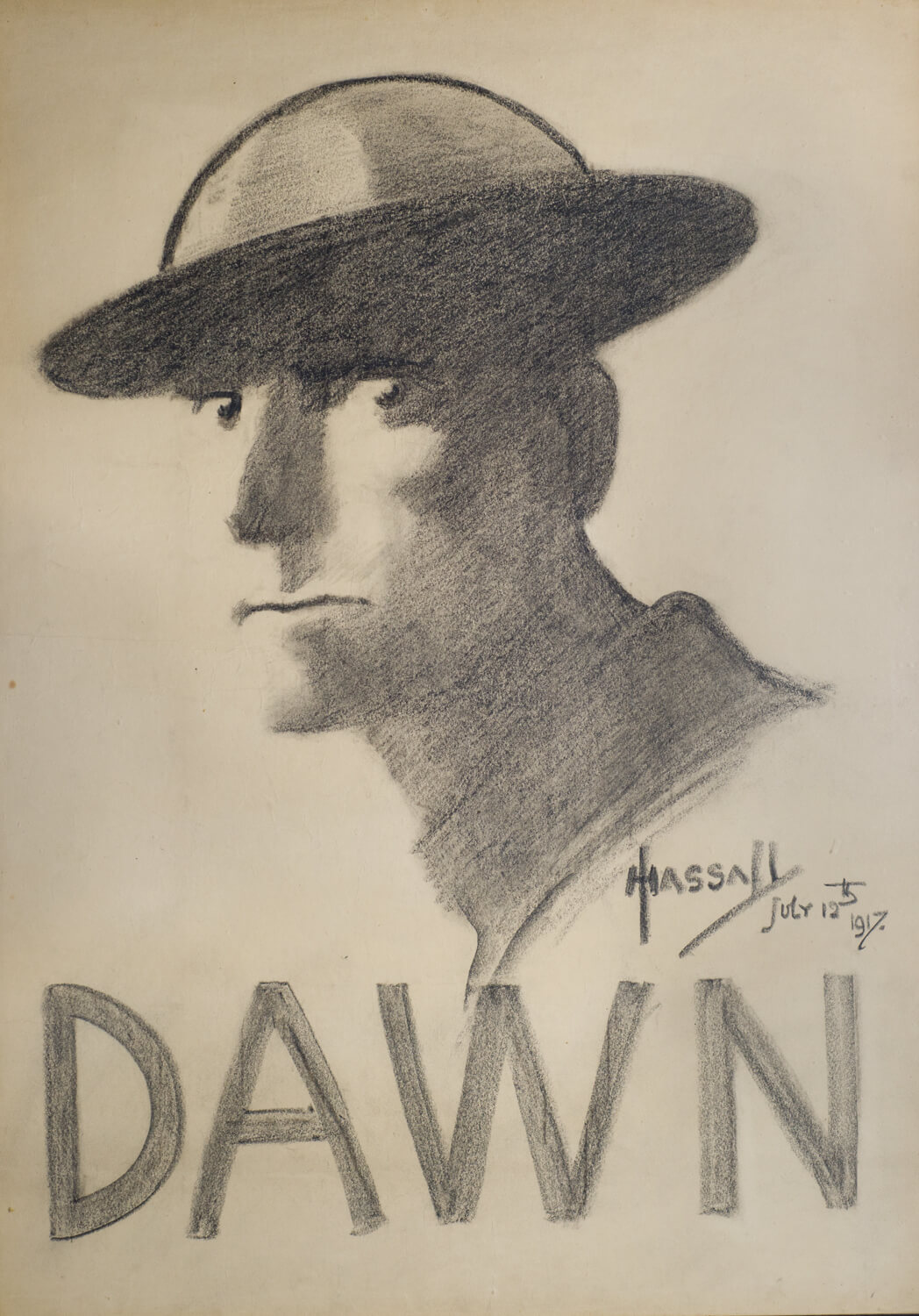 Cartoonist, illustrator, designer, painter and teacher, born in Walmer, Kent. He was the father of the artist Joan Hassall and the writer Christopher Hassall. After education in England and Germany, and twice failing to gain a commission at Sandhurst, he emigrated to Manitoba, Canada, where he farmed. In the early 1890s, after some success contributing sketches to The Graphic, he moved back to Europe, studying art in Antwerp, then enrolling at the Academie Julian in Paris. Returning to England in the mid 1890s Hassall became a popular cartoonist and one of the most celebrated poster designers of his generation (his designs Included the well-known advertisement “Skegness Is so bracing.”). Hassall illustrated numerous books (especially for Blackie and Co.) and periodicals such as The Idler, London Opinion, Pearson’s Magazine and The Tatler. For many years he ran his own school of art, the New Art School and School of Poster Design. He was a member of RI, RWA, London Sketch and Savage Clubs. He lived in London and designed posters for the Great Northern Railway and numerous other clients. Like many artists who achieved a huge reputations through commercial work, Hassall craved public recognition of a different sort. Through his Royal Academy exhibits – larger, ambitious, historical works – he sought to establish himself as an academic painter. These works, however, lack the originality, liveliness and invention of his instantly recognisable and hugely successful commercial work.