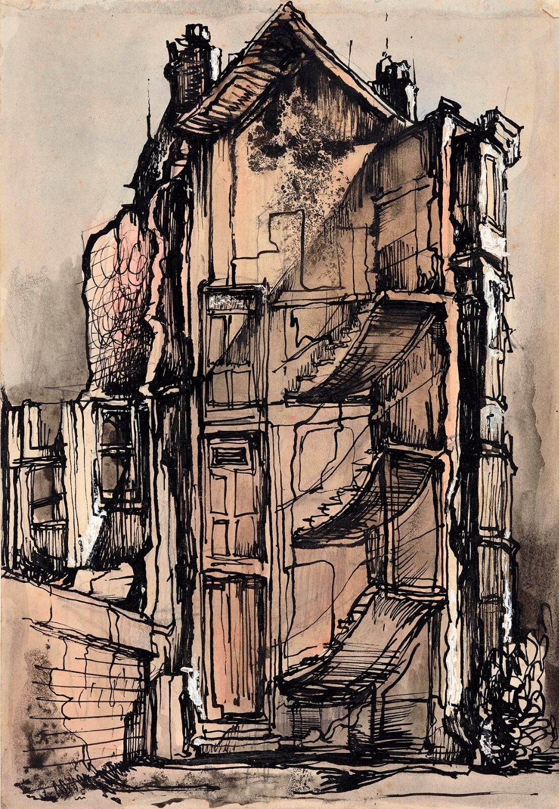 Evans  studied at Central School of Arts & Crafts under Keith Vaughan.  His early work, including studies in pen and ink and work in photo montage,  has only recently come to light. In his draughtsmanship there are clear generational influences, from Keith Vaughan (1912-1977), to Peter Blake (b.1932), David Hockney (b.1937), Alan Reynolds (1926-2014), Lucian  Freud  (1922-2011), and  Eduardo Paolozzi (1924-2005).