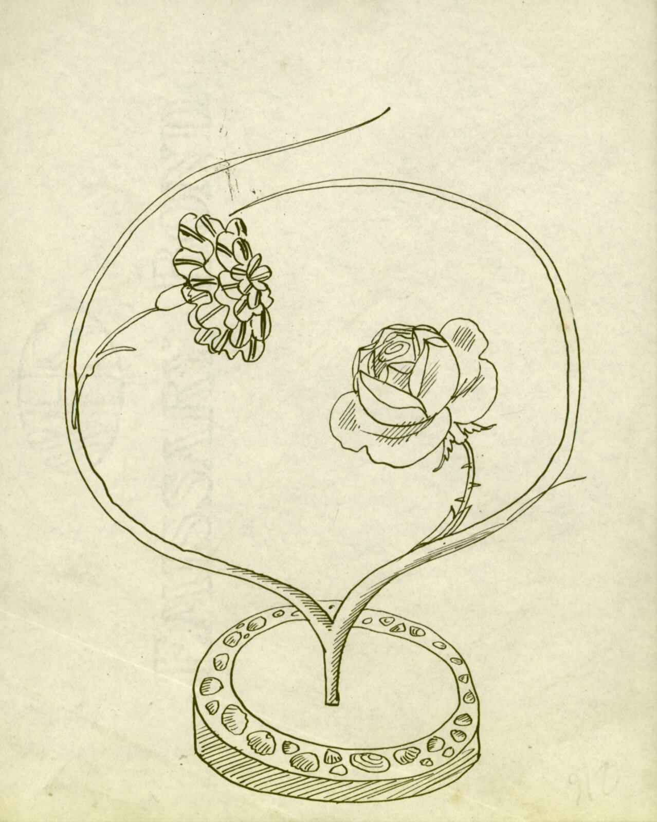 Dunbar often illustrated her personal letters lavishly, weaving her text around her drawing. Here various flowers including a tulip, a rose and a sunflower grow out of the same stem. In known examples, to (for instance) fellow artists Charles Mahoney, Allan Gwynne-Jones and Edward Bawden, Dunbar used water colour to enhance her effect.