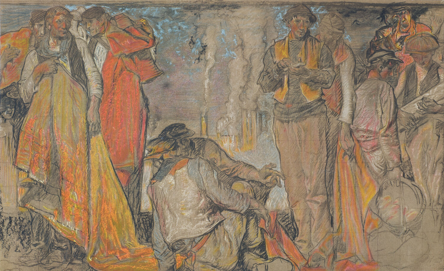 Brangwyn was a fervent believer that art should be accessible to all, regardless of wealth or station, which probably explains his interest in autographic processes. A mass produced printed work was obviously considerably more affordable for the general population than a one-off oil painting. Although Brangwyn cut corners – he would rework an image in a variety of media and frequently recycled areas of etching plates to produce another print run – he appeared to give his printed work as much attention to detail and composition as his original pieces.