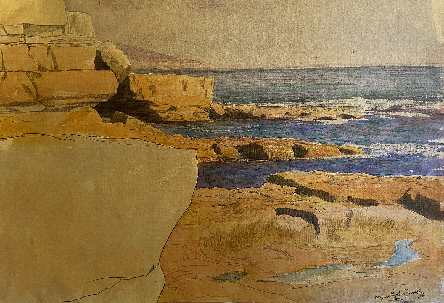 A reclusive figure whose work has remained largely unseen, Finney studied under Eric Gill before winning a scholarship to the Royal College of Art in the early 1920’s; his closest friends there were Charles Mahoney,(1903-1968), Gerald Ososki (1903-1981) and Barnett Freedman (1901-1958). Finney had the good fortune to attend the RCA as part of a golden generation, many of whom went on to become some of Britain’s best loved artists (amongst them Ravilious, Bawden, Hepworth, Moore, Dunbar, Sorrell, and Piper). After a travelling scholarship to Rome, in 1929, Finney returned to become a teacher at Chelsea School of Art – working alongside Henry Moore who was in charge of the Sculpture Department and Graham Sutherland, the Department of Design.
