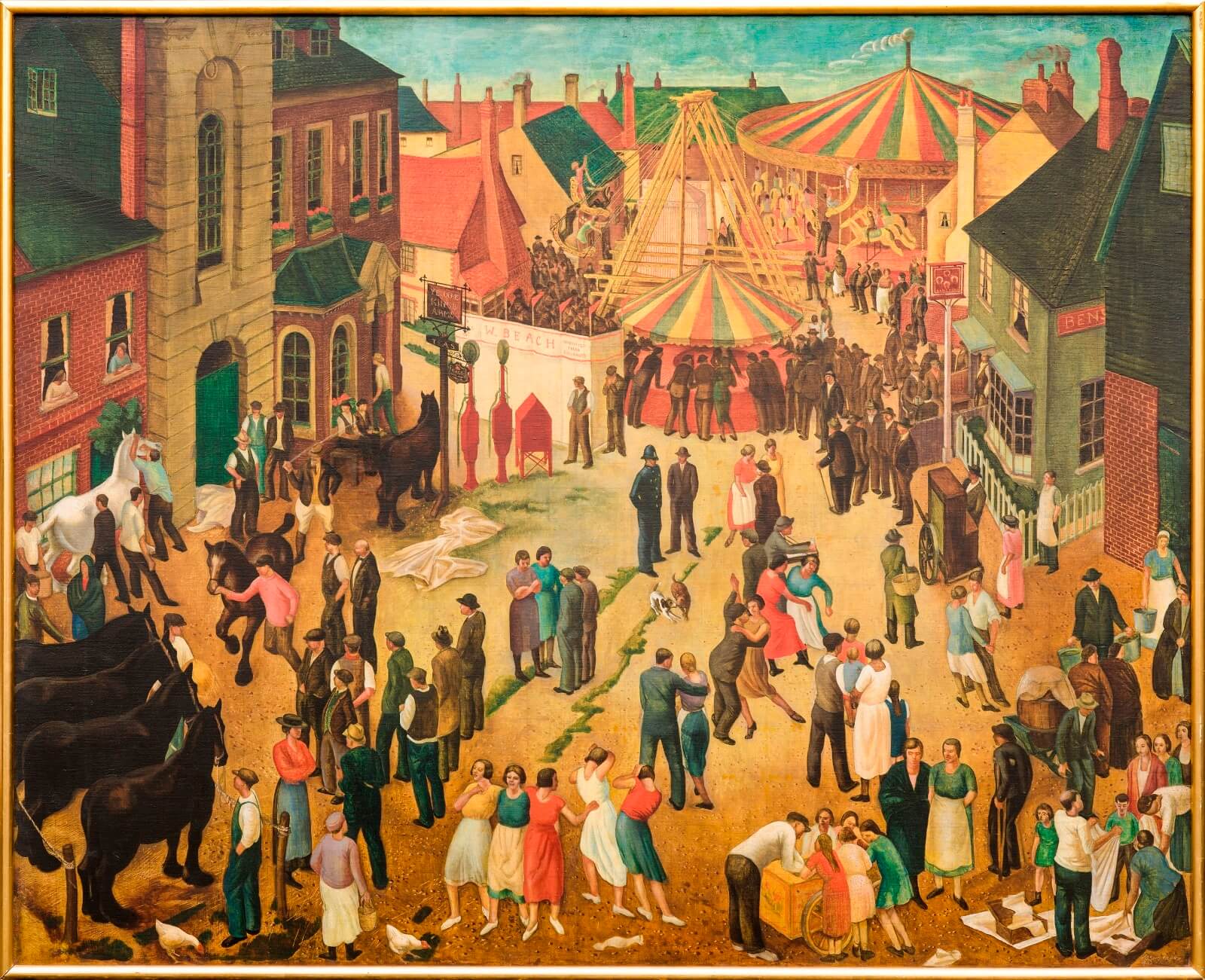 Painter and teacher, born in London. His father was the artist James Clark, his wife the painter Jean Clark. Studied at Goldsmiths’ College School of Art, 1912-14 and 1918, Academie Julian, Paris, 1918-19, and Royal Academy Schools, 1919-21, there winning a gold medal and Travelling Scholarship. Taught at Camberwell School of Arts and Crafts, then was head of Hackney Art School. At one time directed the Rural industries Bureau and was a trustee of the Imperial War Museum. Was elected NEAC, 1946, RWS, 1952, and RA, 1958. Clark, whose work is sometimes similar to that of Edward Wadsworth, exhibited at the RA, NEAC, Leicester Galleries, RI and ROI as well as on the continent and in North America. Huddersfield Art Gallery and the Graves Art Gallery, Sheffield, hold his work. Lived in London. Chappel Galleries, Chappel, held a joint Jean and Cosmo Clark show in 2002.