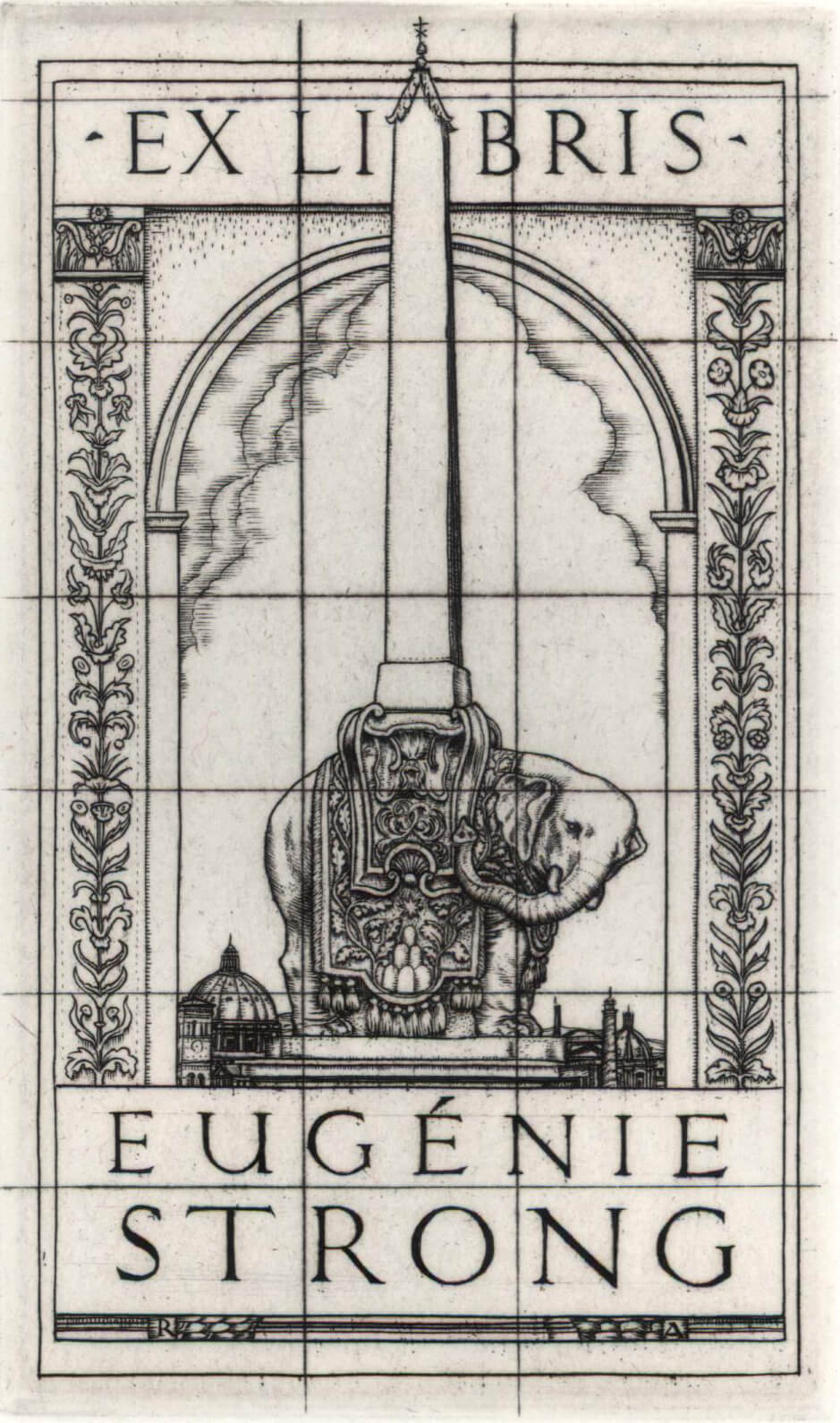 Austin was the Rome Scholar in Engraving for 1922. The Ex Libris plate designed for the renown Classics scholar Eugenie Strong depicts the Elephant and Obelisk sculpture by Bernini.(1667), from the Piazza della Minerva in Rome.