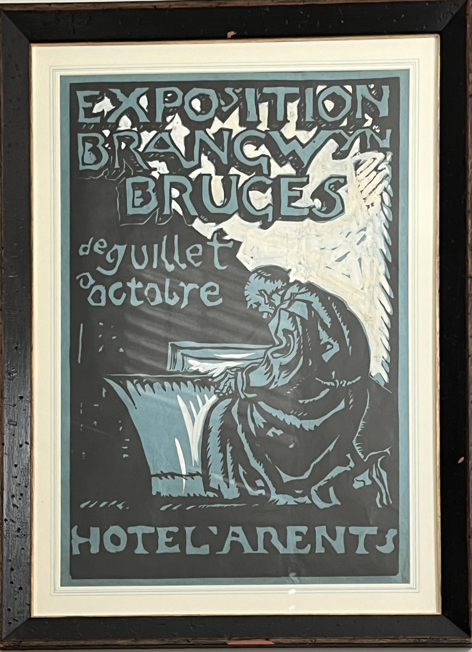 Lettering: ‘Exposition/brangwyn/bruges/ Juillet a/Octobre/hotel’arents’