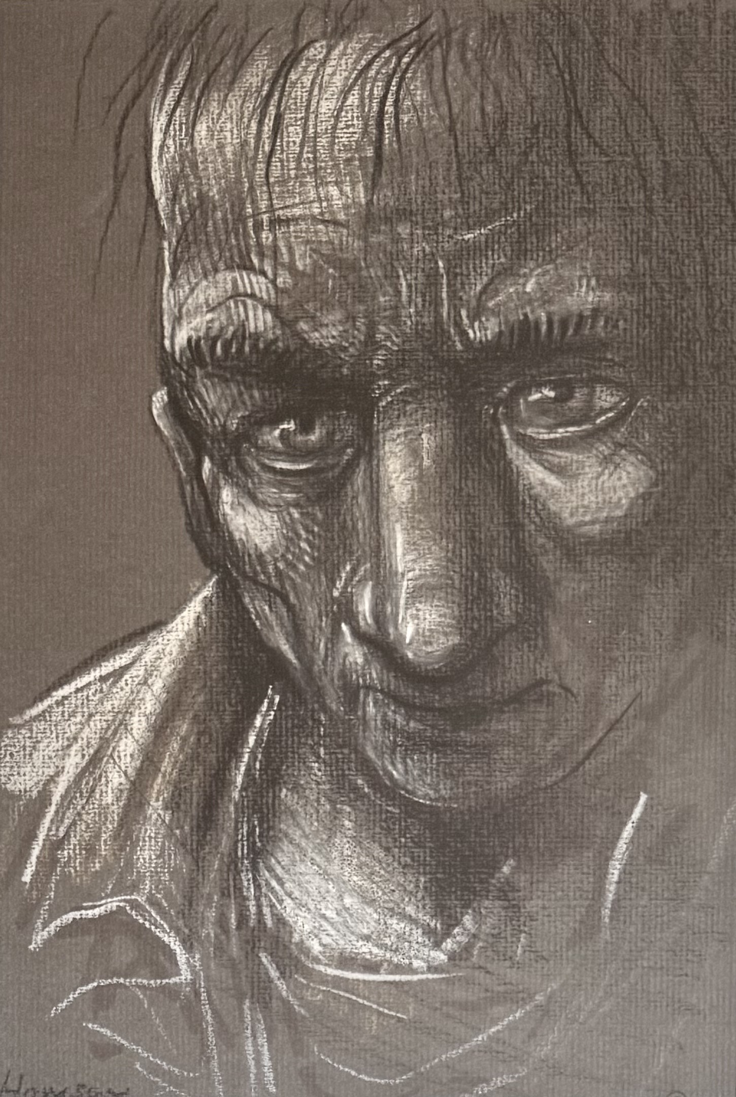 Peter Howson (b. 1958) is a prominent Scottish painter celebrated for his intense figurative style, often focusing on themes of masculinity, struggle, and spirituality. Born in London and raised in Ayrshire, Scotland, he showed early artistic promise and later studied at the Glasgow School of Art. He became known in the 1980s for bold, muscular depictions of working-class life, often drawing on his own experiences and background.
