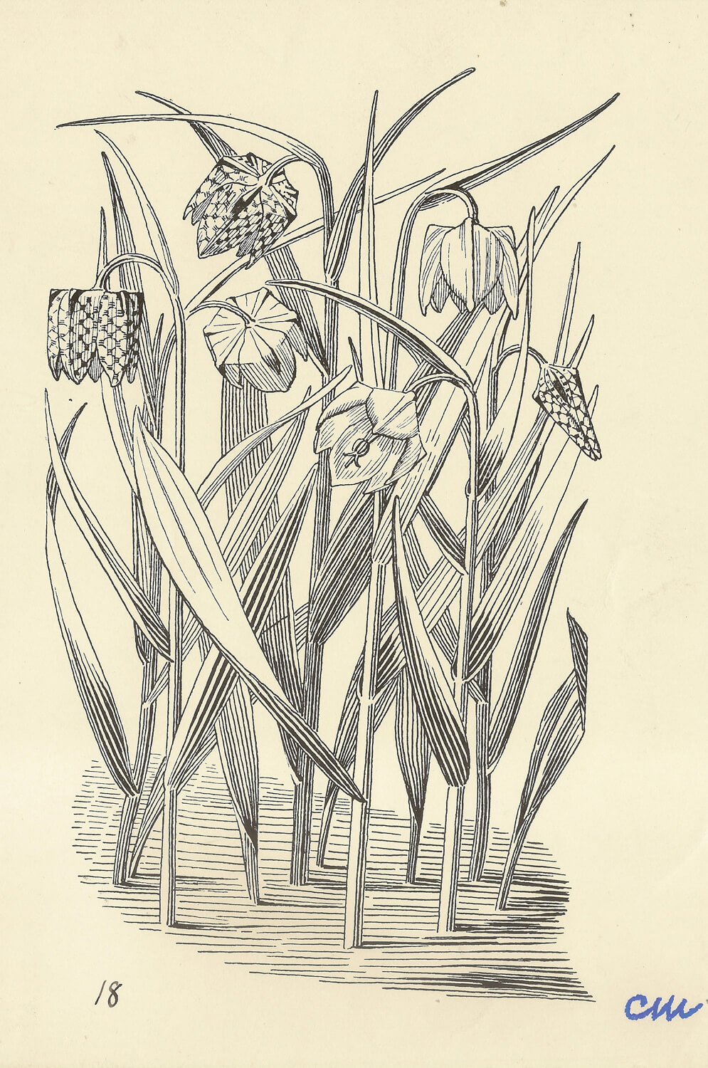 Literature: Gardeners’ Choice, by Evelyn Dunbar and Charles Mahoney, with a previously unpublished preface by Edward Bawden and with a new afterword by Christopher Campbell-Howes, Persephone Books, London 2015. Fritillaria Meleagris appears on page 89 of Gardeners’ Choice.