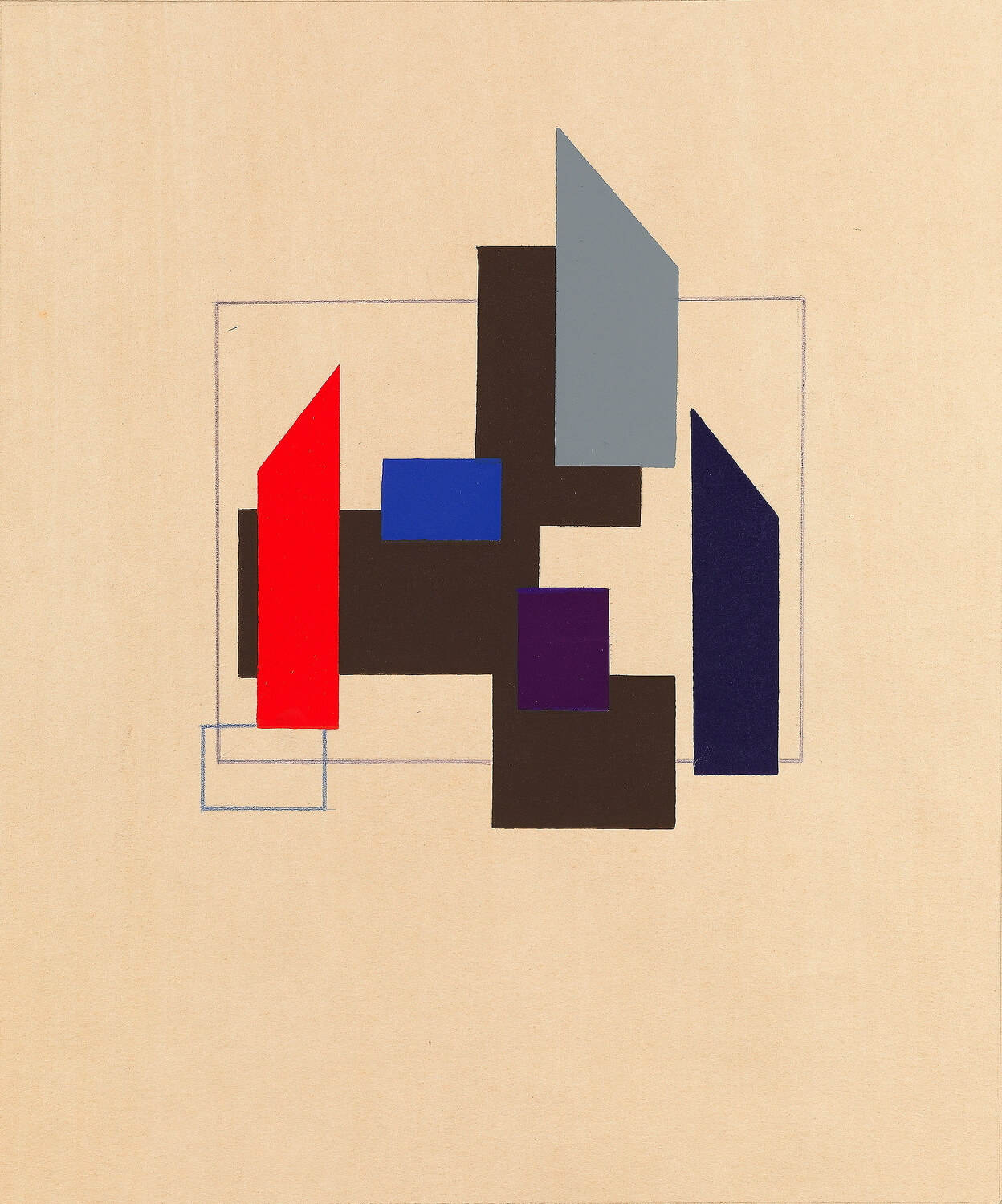 In 1941, following the breakdown of her marriage to Robin Guthrie, Kathleen married Cecil Stephenson, a member of the group of constructivist artists led by Ben Nicholson. From this point on her work moved increasingly towards abstraction. In the 1960’s she embarked on her Camelot Series, bold, hard-edged compositions of contrasting forms arranged as pure fields of colour. These formed the main body of work exhibited in 1963 at the New End Gallery and her retrospective at the Drian Galleries in 1966.
