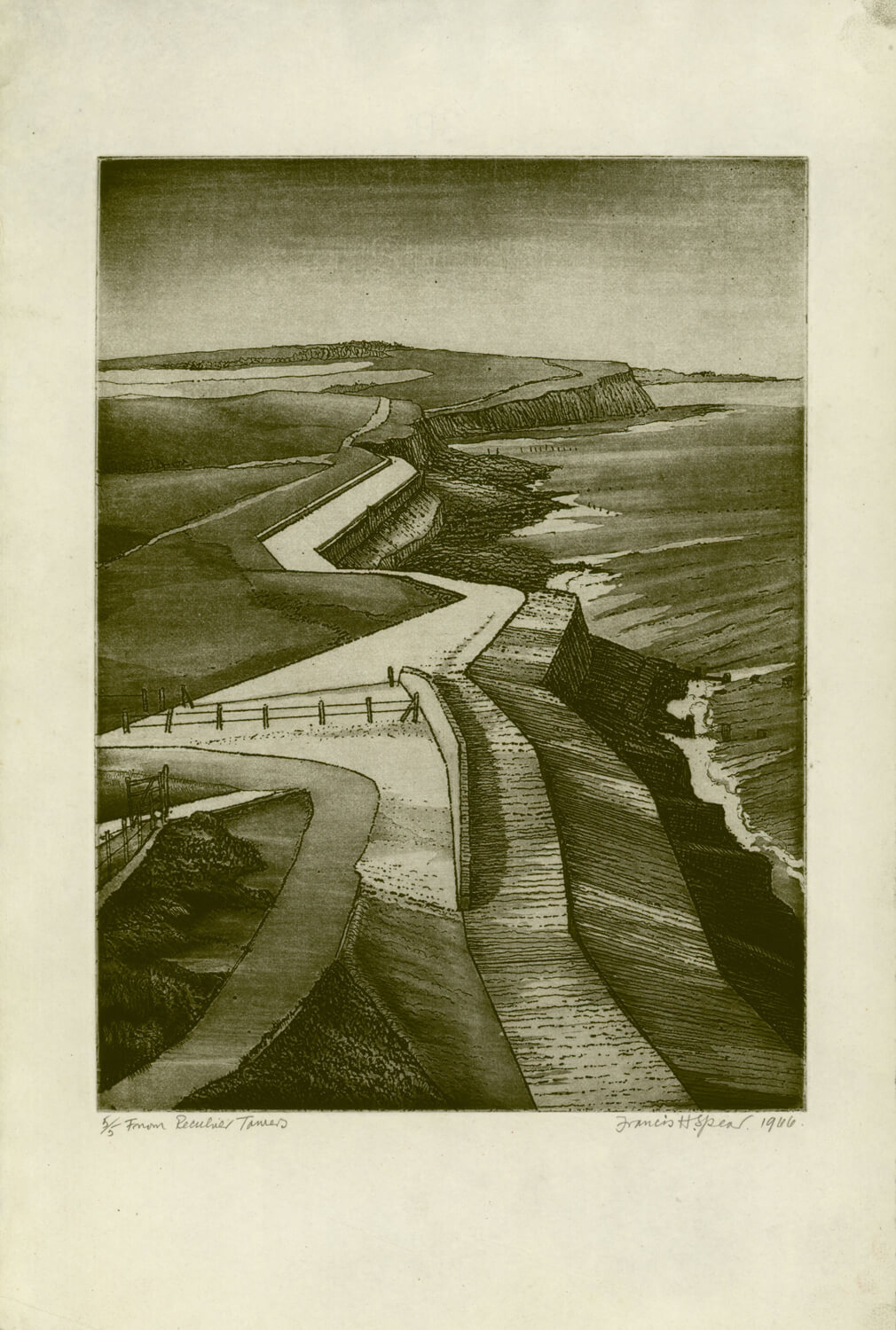 Francis Howard Spear (1902-1979) was a printmaker and a stained glass artist who attended the Royal College of Art with Bawden, Ravilious in the mid 1920’s and later went onto teach at the School. The V&A holds examples of his stained glass and a number of designs for stained glass, and his coloured lithographic print Horse Race.