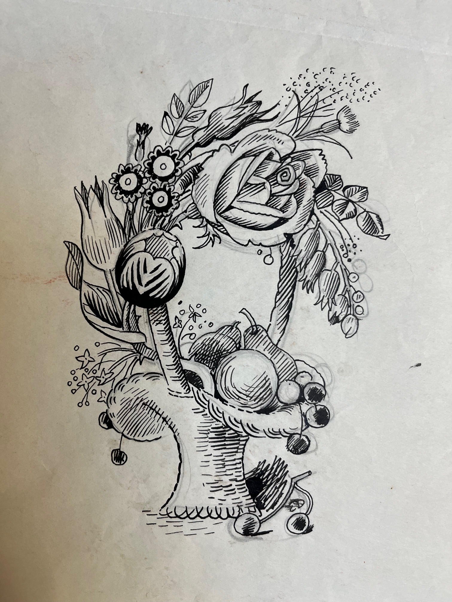ink and pencil.