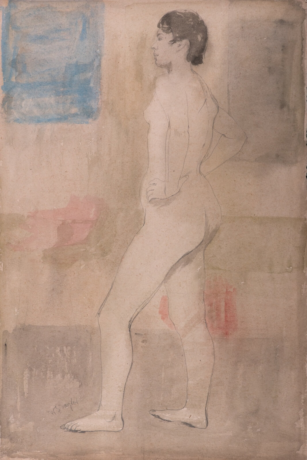 Standing female nude, profile view