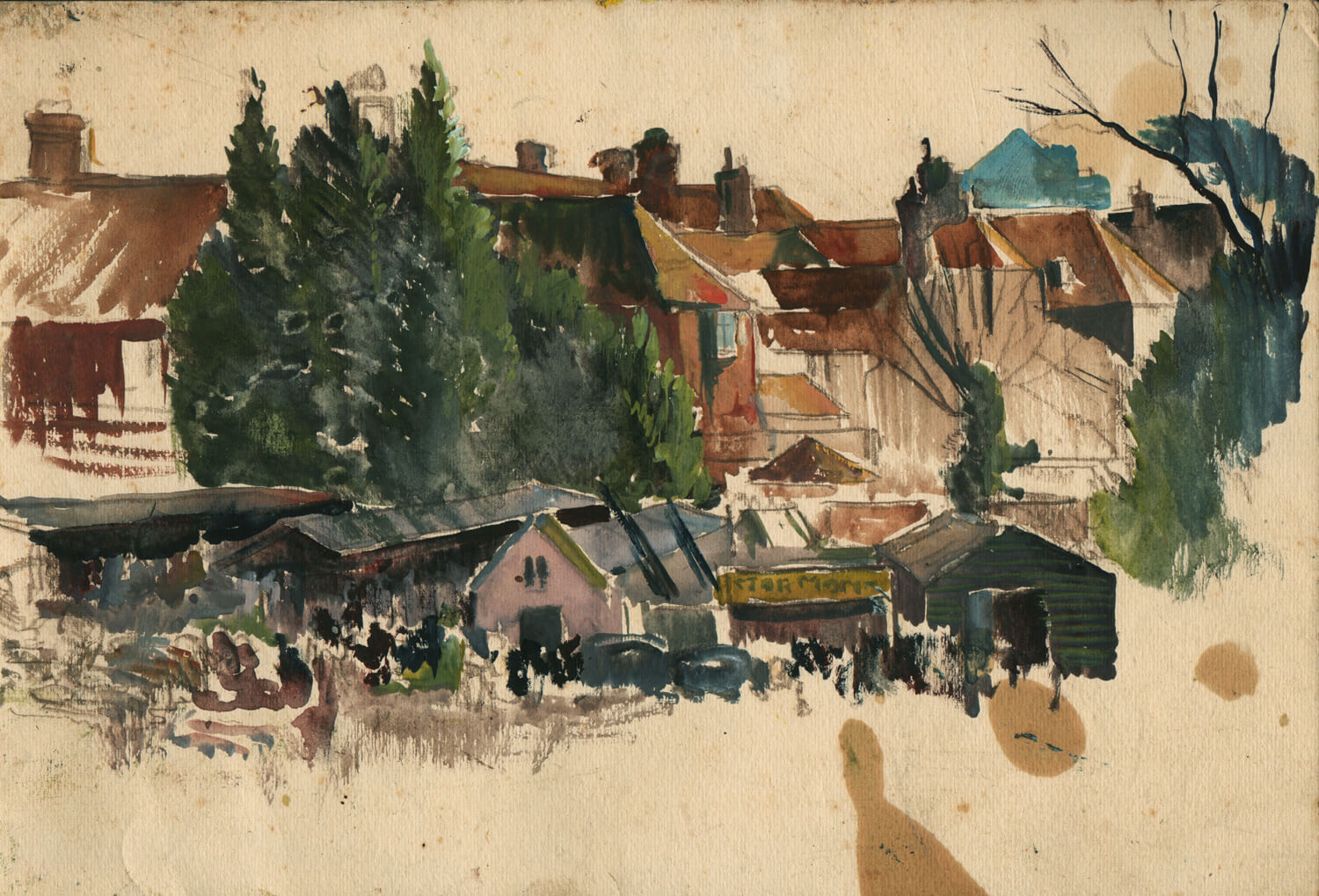 Painting in oil on paper, en plein air, Cundall’s sketches retain a vitality which was sometimes lost when working up the finished, larger, paintings in his studio.