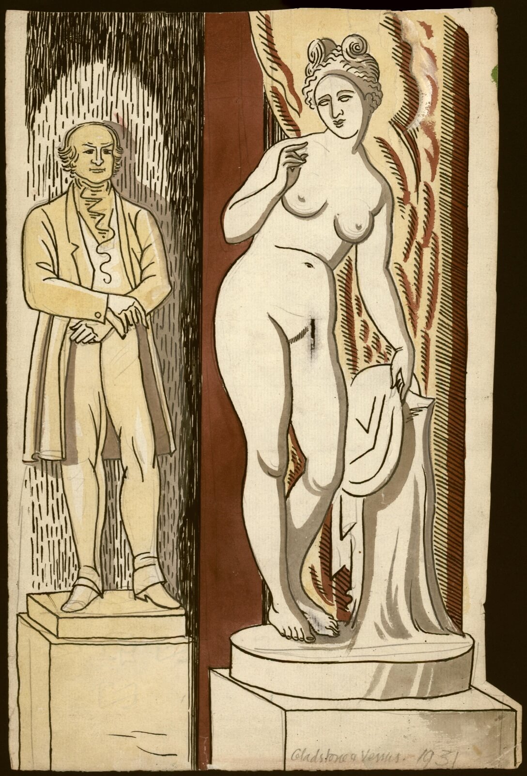 In 1931 Adshead began a series of drawings and watercolours of the Crystal Palace, London. She exhibited regularly at the Royal Academy and with the Women’s International Art Club from the mid-1930s.She and Bone produced murals for Cunard’s liner Queen Mary in 1935-6