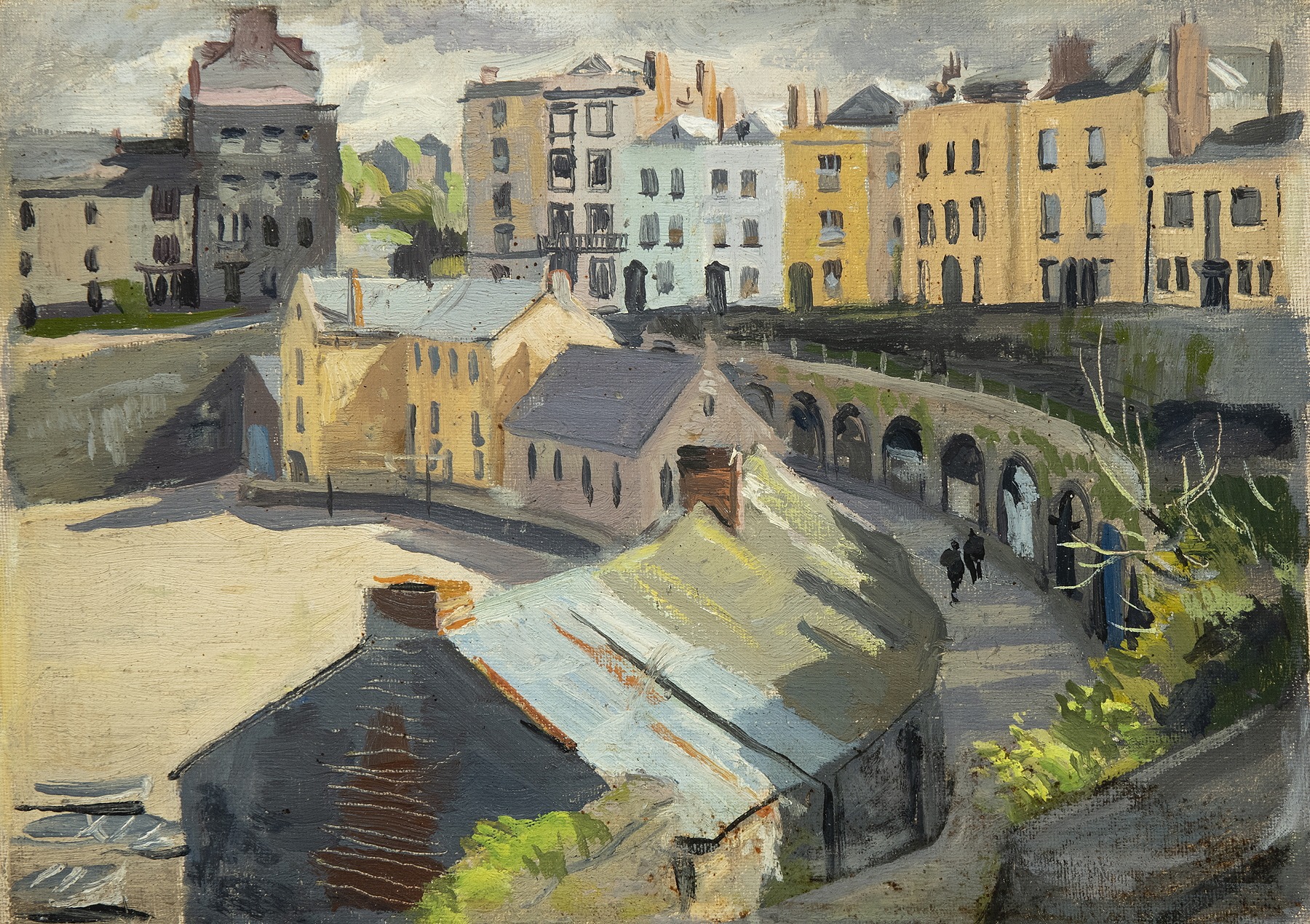 Bone’s panels were painted out of doors in just a few hours of intense concentration and testify to his painterly skill and sure sense of colour. They show his family and friends and also his knowledge and love of landscapes and townscapes in the l930s and 40s so much of which has now changed or disappeared. From Ireland to Sweden and from Scotland to Spain he carried his wooden paintbox fitted out with paints, brushes and a rack of 3 or 4 primed panels. His remarkable productivity – he aimed to paint at least one panel a day – was only curtailed by his premature death at the age of 54.