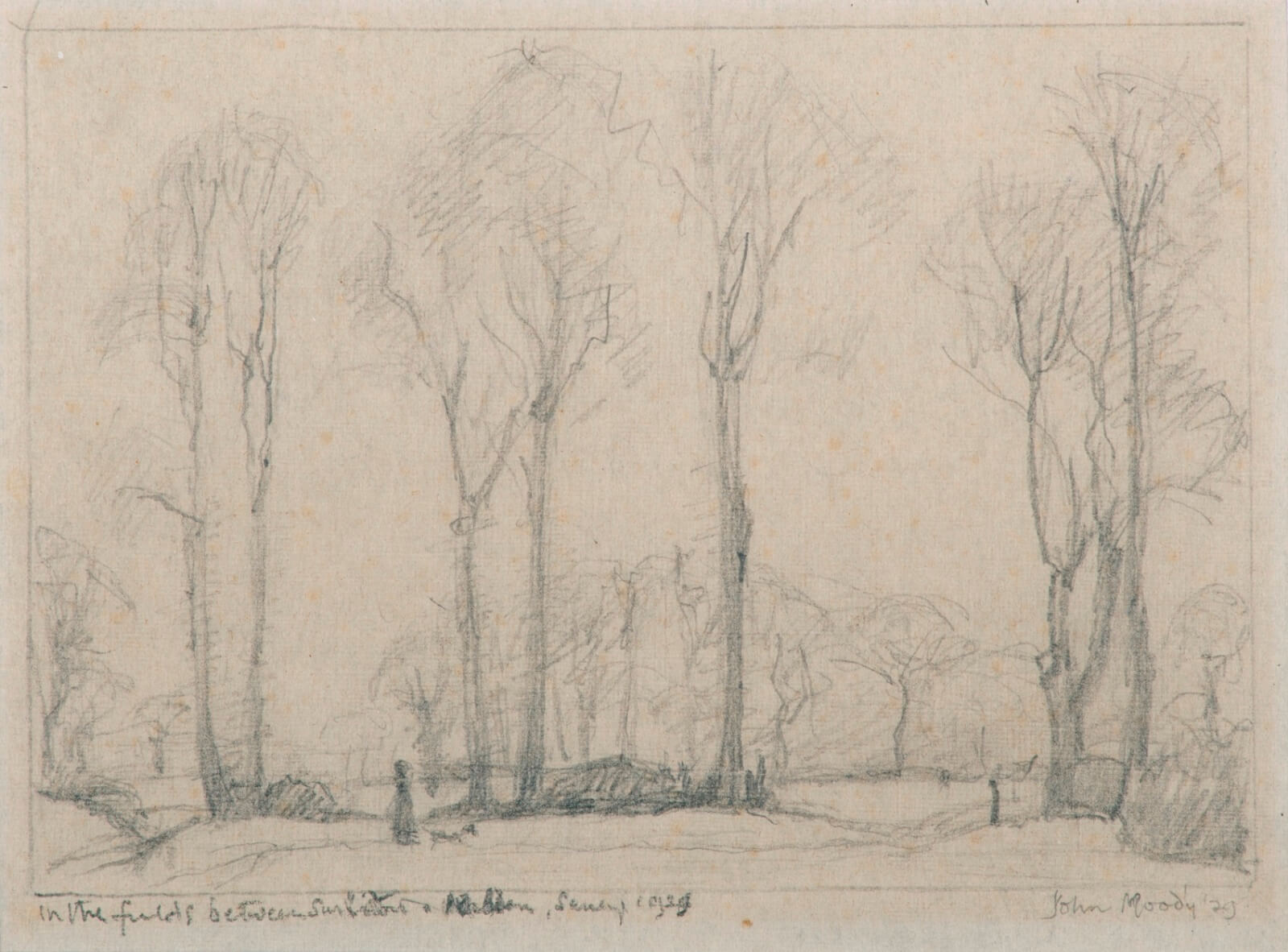 Moody was trained at the Royal Academy Schools, co-founded the New Kingston Group of painters and taught at Wimbledon School of Art in the early 1930’s. However he is better remembered as a theatre and opera producer as well as Director of the Arts Council’s Drama department. He took over Eric Ravilious’s and Edward Bawden’s studio in the late 1920’s and he worked closely with Robert Medley and John Piper. He was badly injured during the Blitz which affected his painting ability, which is why his early work is particularly interesting.