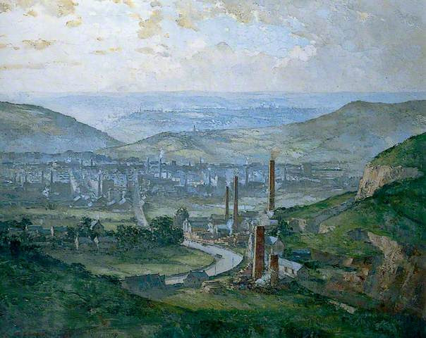 This is probably a study for Cundalls “Mills and Moors” at the Kirklees Museum and Galleries;