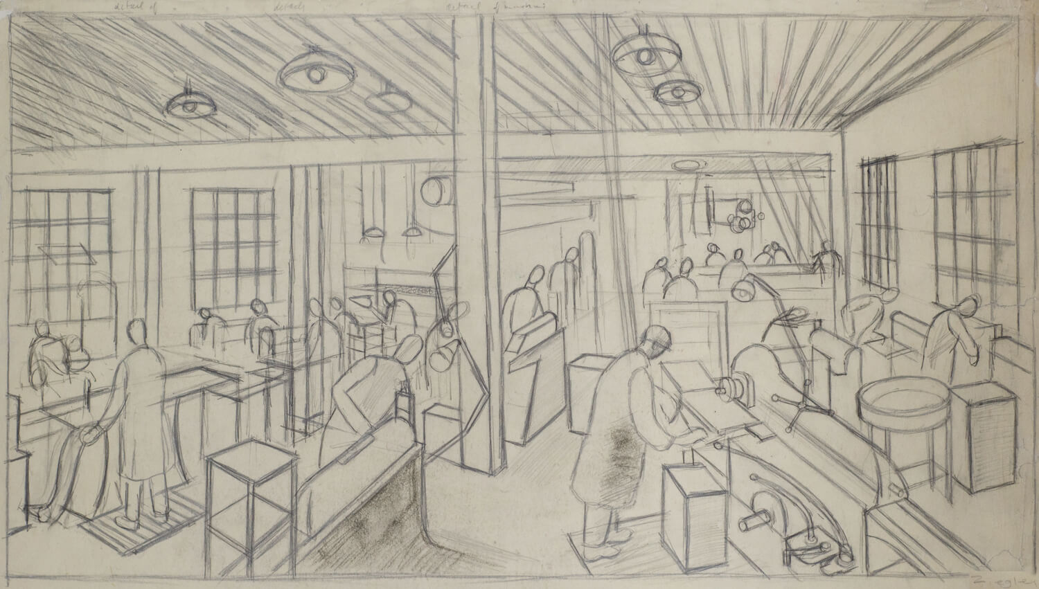 As a young art student Ziegler lived through the 1926 General Strike. In the 20’s and 30’s he painted a number of factory workers and factory scenes and his pictures were often politically higher charged.