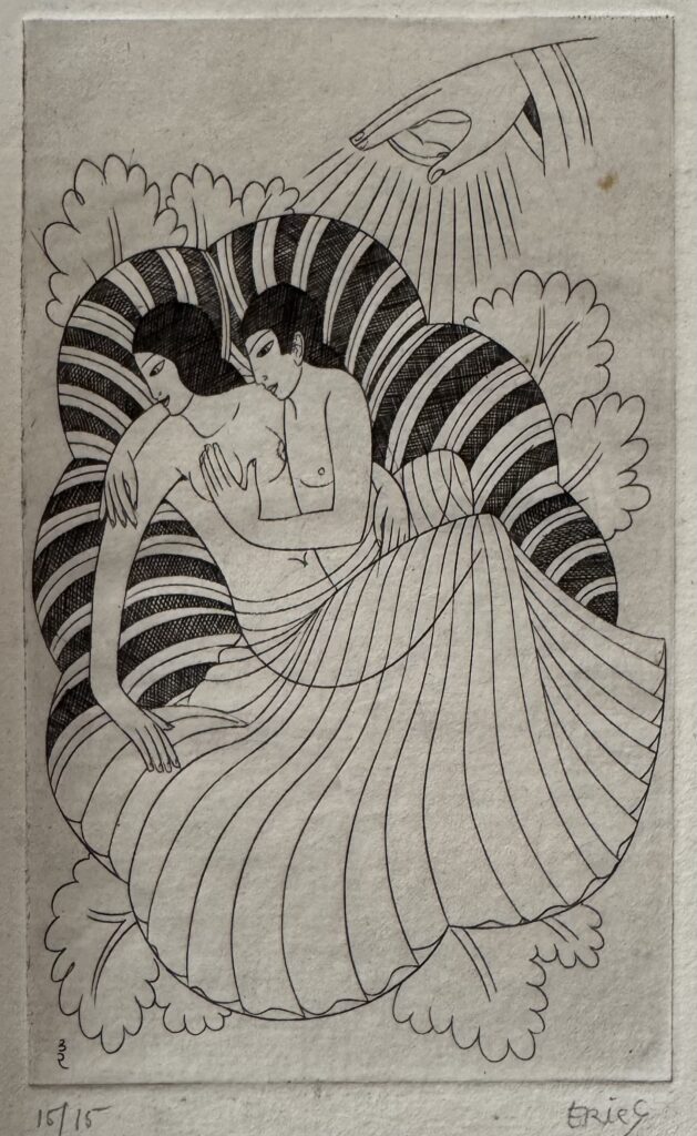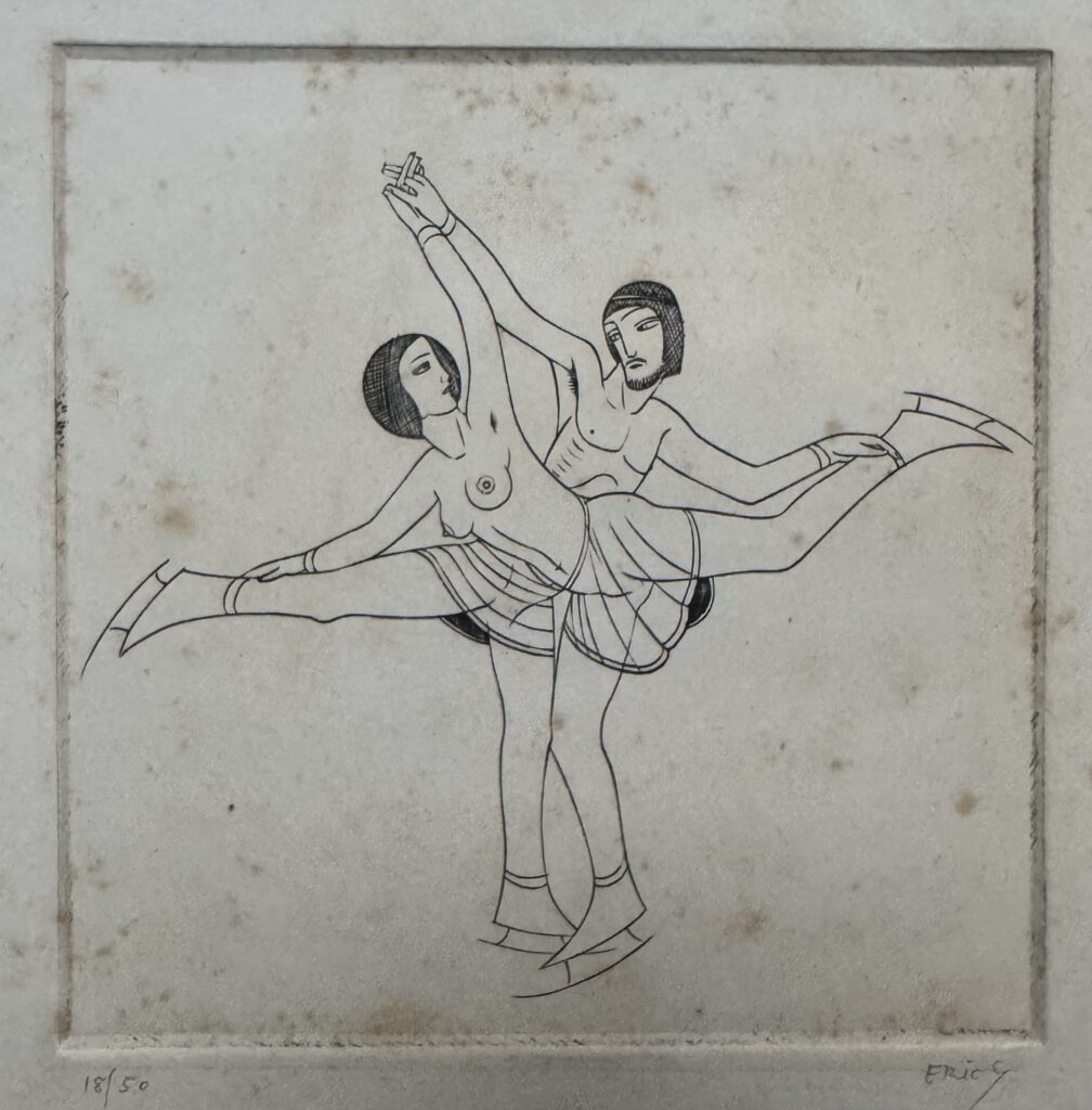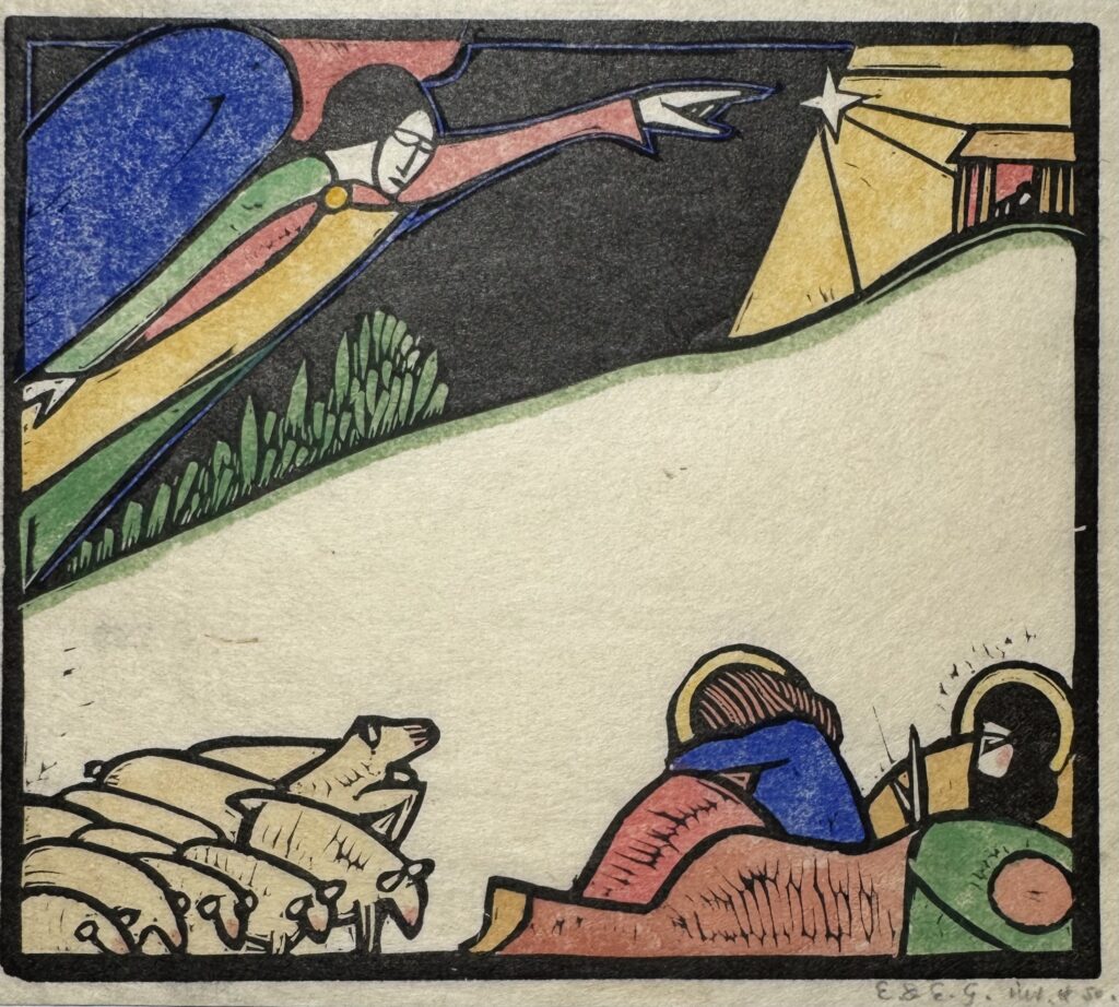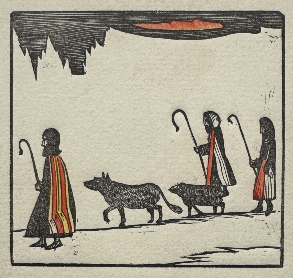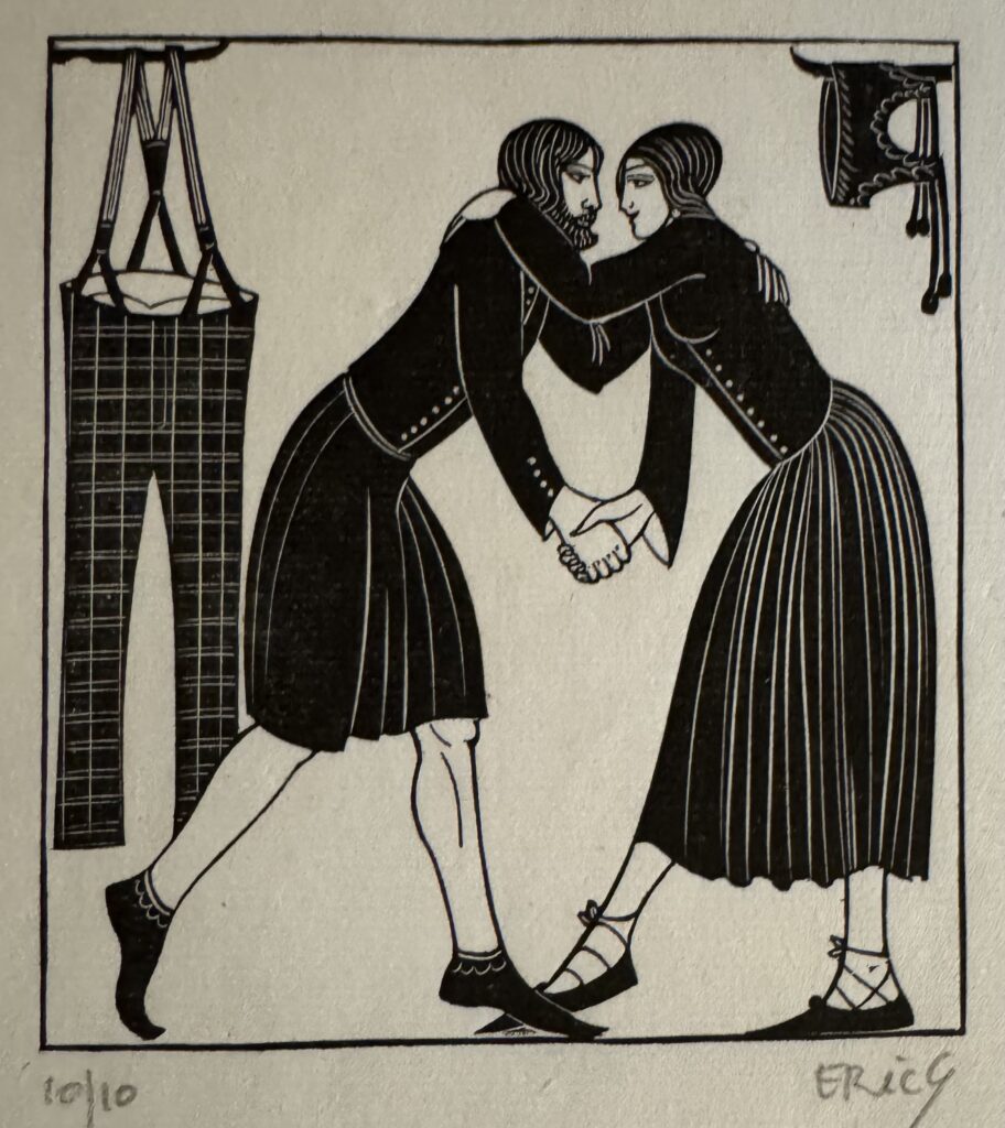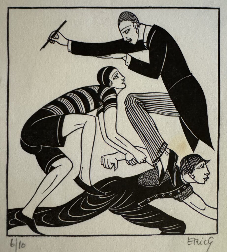 In 1924, he moved to Capel-y-ffin in Wales and over the next four years produced much of his greatest engraved work, mainly for Gibbing’s Golden Cockerel Press. He moved again to High Wycombe, Buckinghamshire in 1928 and though a controversial figure in that his sexual improprieties remained in conflict with his Catholic faith, Gill is nowadays regarded as one of the greatest craftsmen of the 20th century, a typographer and letter cutter of skill and a masterly wood engraver. Gill was appointed RDI in 1936 one of the Royal Society of Arts earliest recipients and was also a Fellow of the Royal Society of British Sculptors.