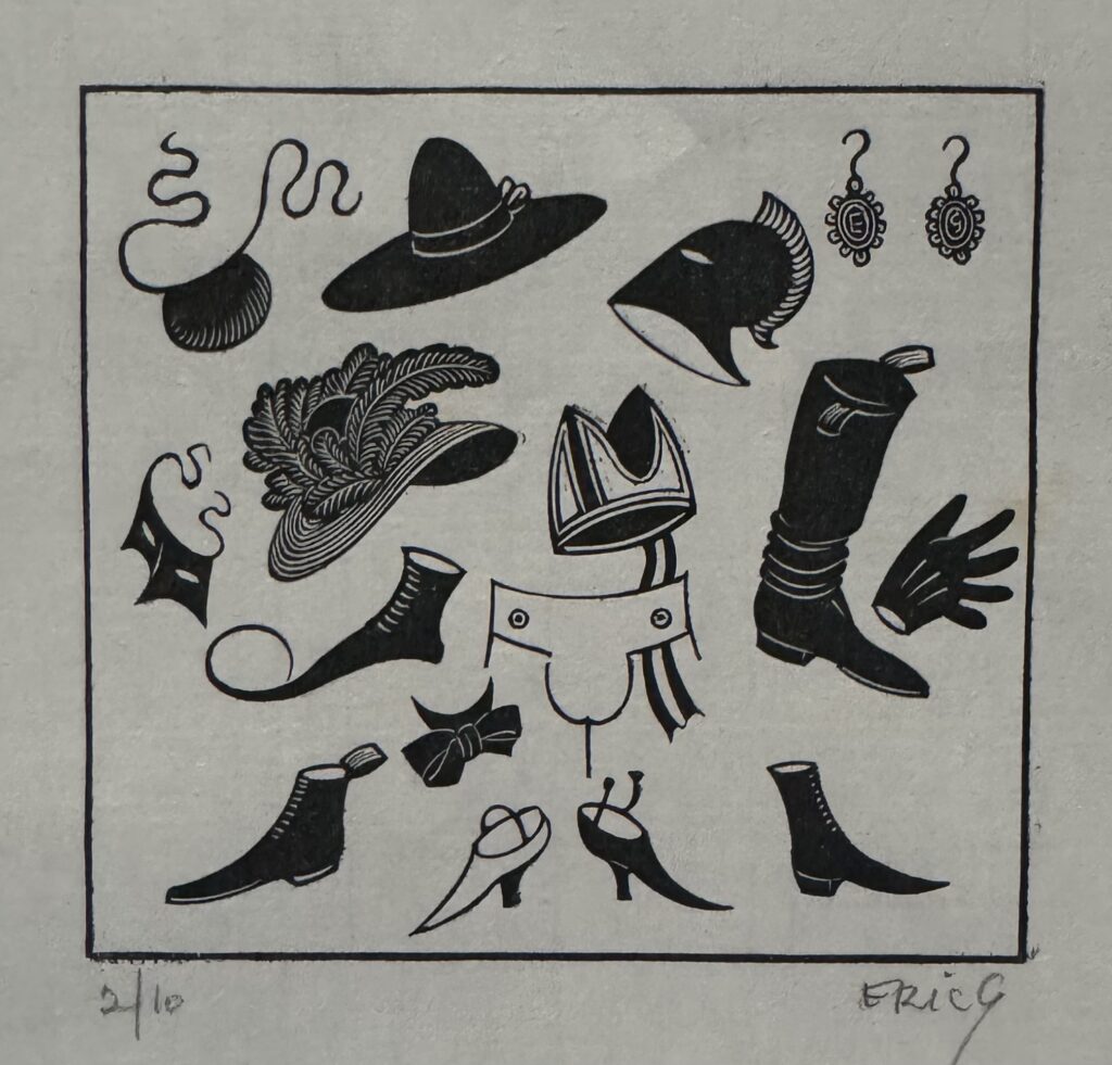 Gill was a member of the Art Workers’ Guild, Society of Wood Engravers and contributed articles to various publications including Industrial Arts in 1936. Retrospective exhibition venues include Kettle’s Yard, 1979 and the Barbican Art Gallery, London, 1992-93 which also toured the UK. His prints are regularly exhibited at KHG, Marlborough, Wiltshire and previously at the Piccadilly Gallery. Examples of his work particularly his prints are in the collections of the V&A, BM, Brighton Art Gallery, Doncaster Art Gallery, Museums Sheffield, Stoke-on-Trent Art Gallery and Hull University.