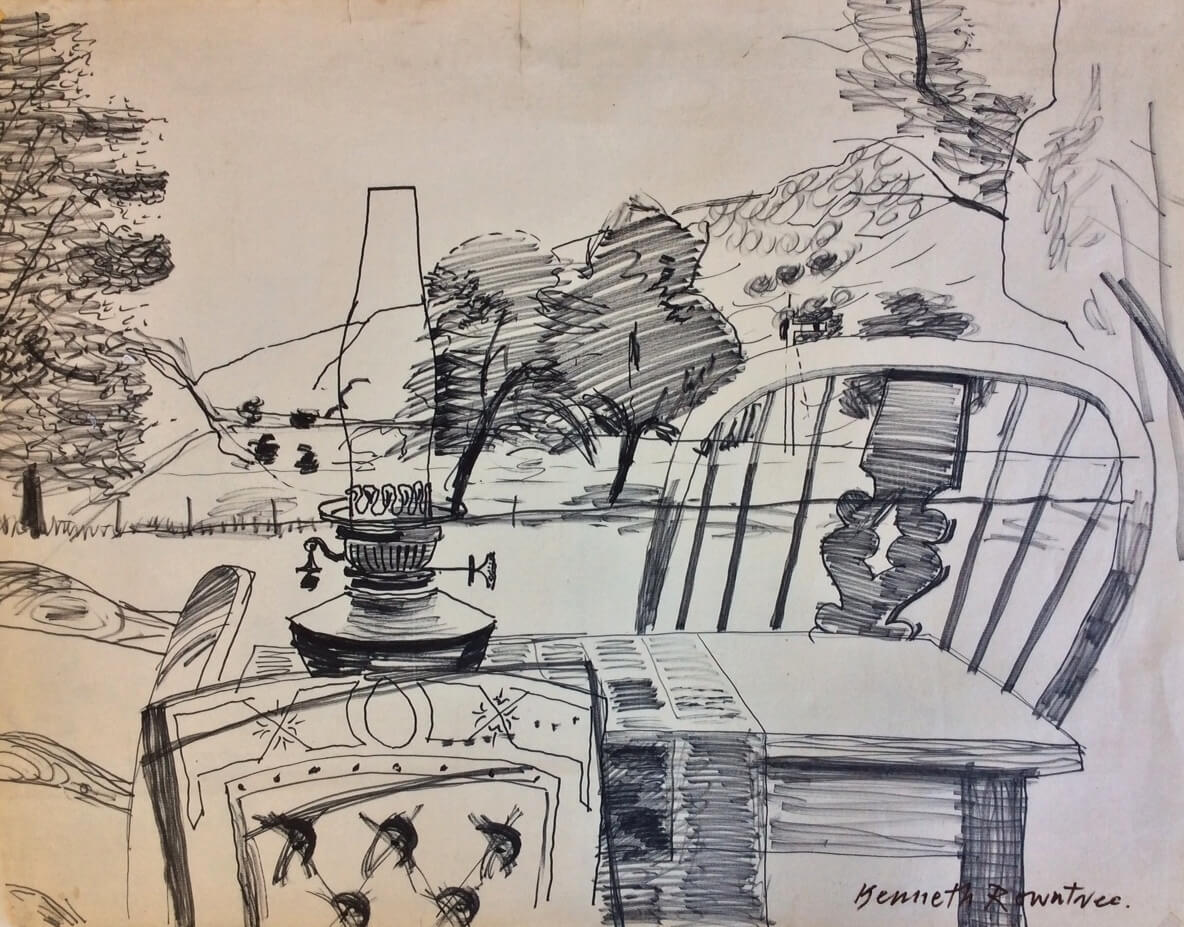 Painter, illustrator, artist in collage and murals, draughtsman and teacher, born in Scarborough, Yorkshire. He studied at the Ruskin School of Drawing, Oxford, under Albert Rutherston, 1934’35, and at the Slade under Randolph Schwabe. During World War II he participated in the Pilgrim Trust Recording Britain project and was an Official War Artist. He had his first one-man exhibition at Leicester Galleries in 1946; other one-man shows followed at the Ashmolean Museum, Oxford, Zwemmer Gallery, New Art Centre, and the Laing Art Gallery in Newcastle-upon-Tyne, with a retrospective at Hatton Gallery there in 1980. In 1949 he became a tutor at RCA, a post he held until 1958. In 1959 he became Professor of Fine Arts, University of Newcastle-upon-Tyne, succeeding Lawrence Gowing; he held the position until 1980. In 1992 a touring retrospective was organinsed, starting in Newtown. Group shows included NEAC, AIA and RSW. He became a member of the Society of Mural Painters in 1943, taught mural painting at the Royal College of Art for 10 years from 1948, and received a Ford Foundation Grant to visit America in 1959. In 1948 he illustrated A Prospect of Wales. Murals completed include those for Barclay School, Stevenage, 1946, RMS Orsova and Iberia, 1954, and the British Pavilion at Brussels International Exhibition in 1958. In 1951 he painted murals for the Lion and Unicorn Pavilion at the Festival of Britain. Tate, Victoria & Albert Museum and WAC are among many public owners of his work. Rowntree’s pictures reflect the genial and witty nature of the artist, usually being landscapes and townscapes in which the elements have a toy-like neatness and familiar notations are employed. In the post-war years he also painted a considerable number of abstract (and semi-abstract) works. His work is sometimes signed with just his initials. He lived at Corbridge, Northumberland.