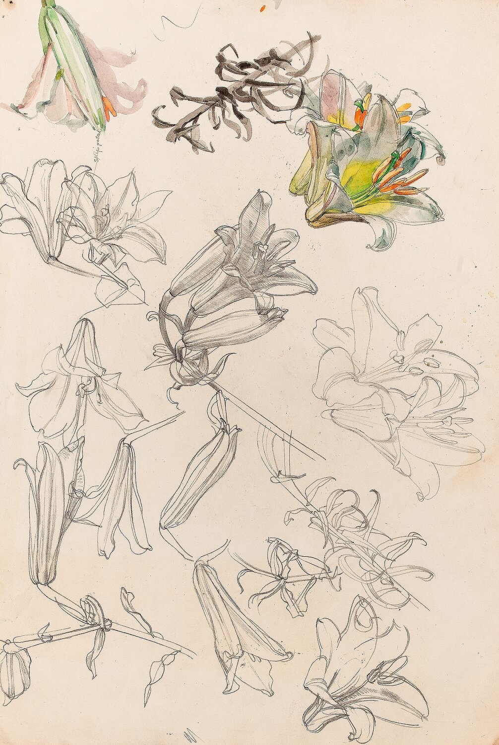 Pencil and watercolour, 18 x 11 in. (47 x 29.8 cm.)